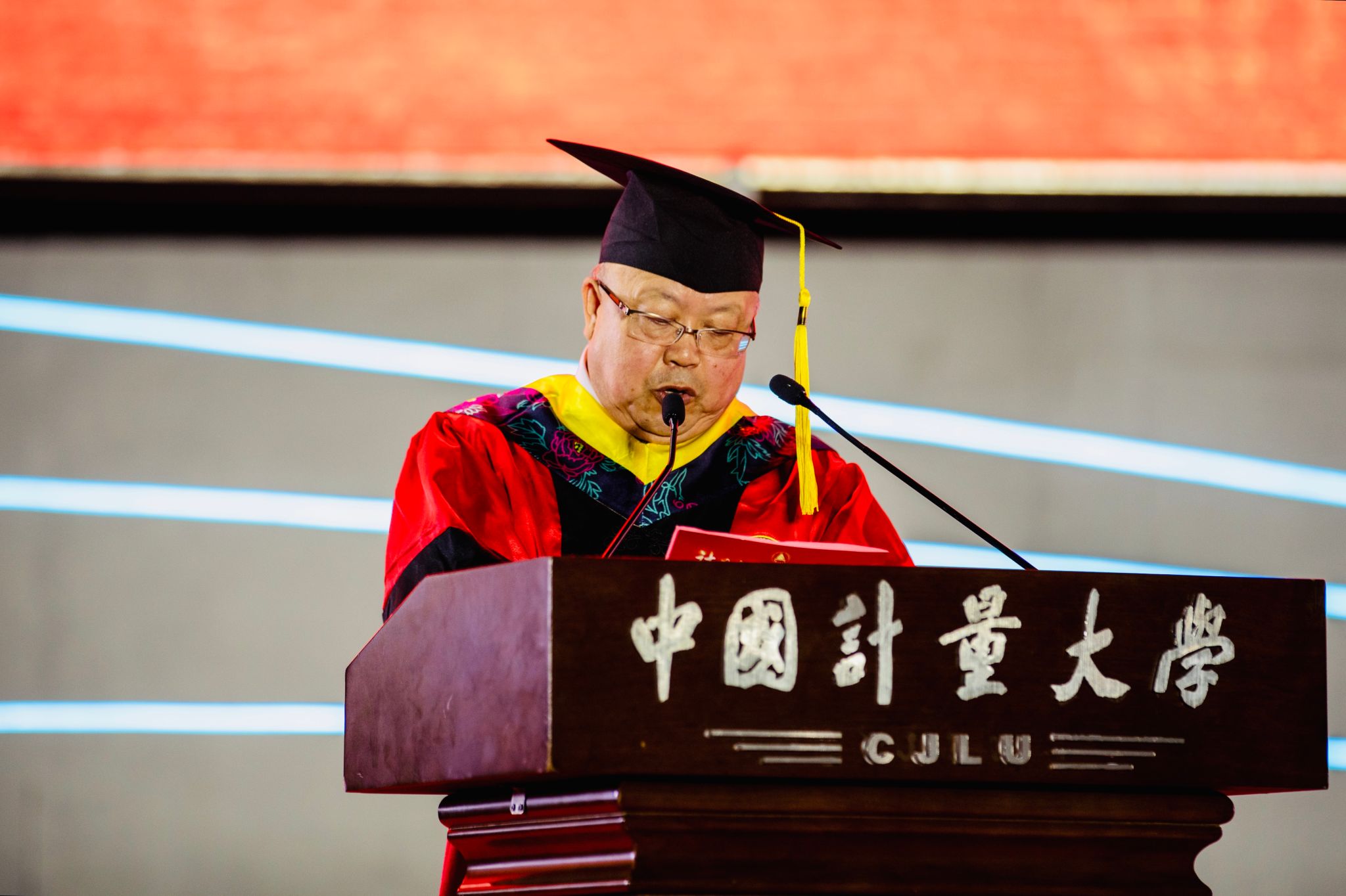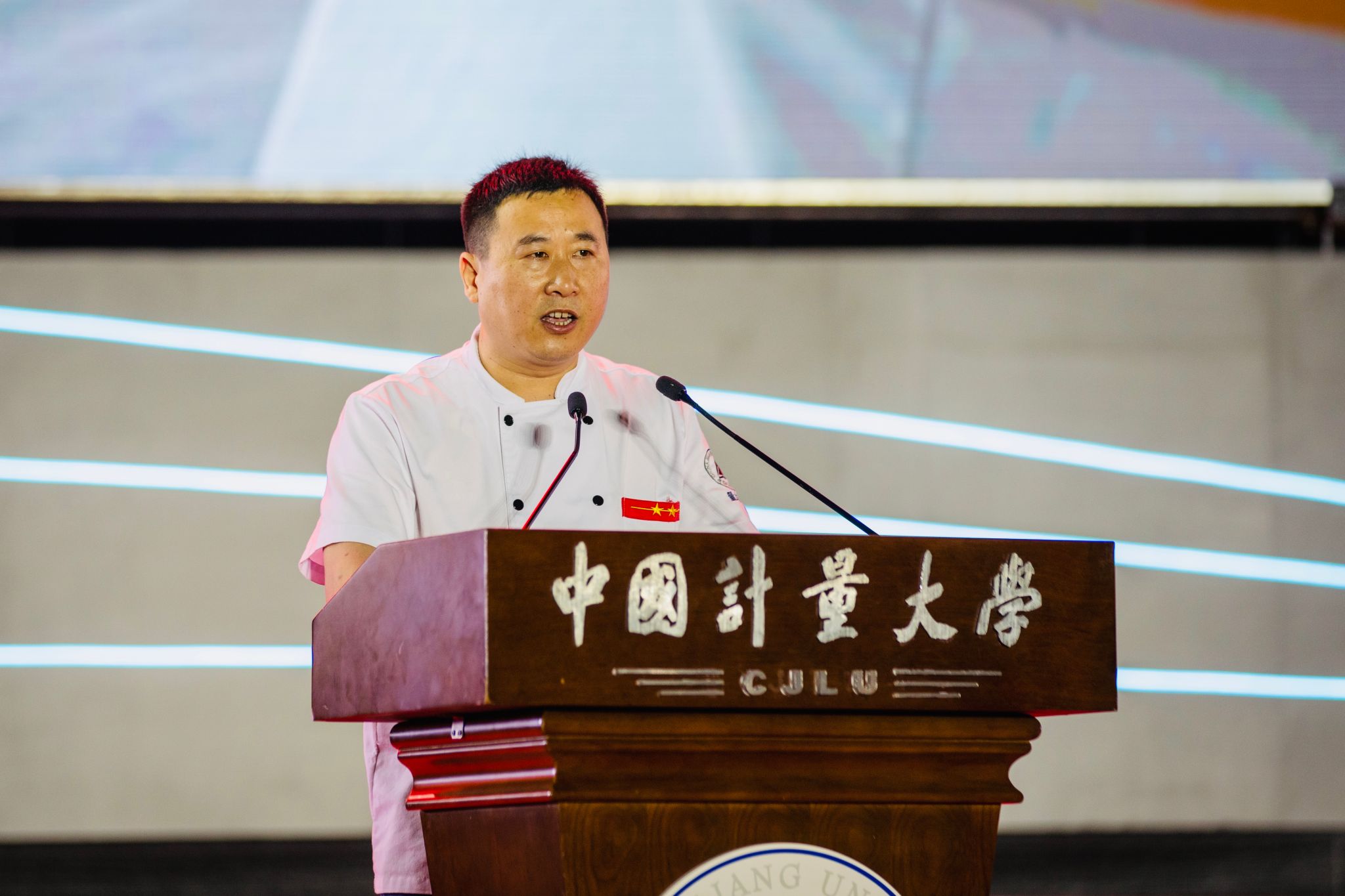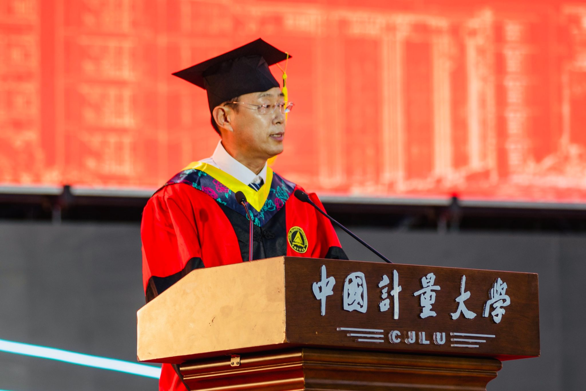 “在国旗护卫队,我们升起了上百次五星红旗;在嘉量舞团,我们出演了十余次剧目。每一次抛出国旗,每一次出演《千秋计量》,都是我不可磨灭的珍贵回忆。”质量与标准化学院本科毕业生陆杰凡在毕业典礼上用铿锵有力的声音讲述他的量大故事。