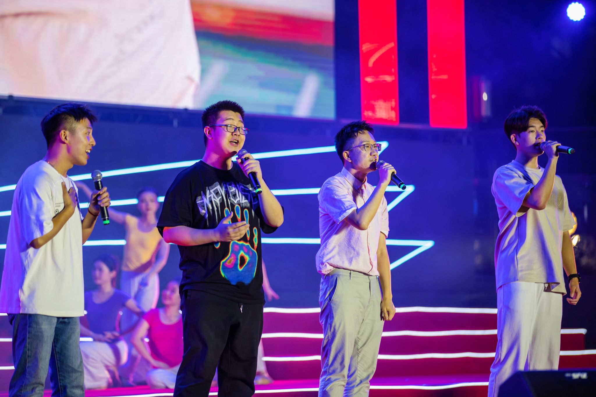 “一缕时光吹来的风,轻抚过花季的梦,青春在生命中,因为梦想而不同……”典礼现场,法学院吴涵昱老师创作的原创歌曲《绽放青春》在毕业班师生代表的温柔吟唱、翩翩舞蹈中,显得格外动人。“希望这首歌能鼓励同学们在毕业后依旧不断学习、探索,挖掘自己的无限可能。”谈起创作过程,吴涵昱坦言,写歌时也想起了自己的读书生活,怀念起青春岁月。歌词充满真情实感,展现了对量大学子的祝福和期许。现场师生也纷纷夸赞,“歌词让我一下子回忆起这几年的大学时光!”“老师同学们的倾情演绎,让我狠狠代入了!”