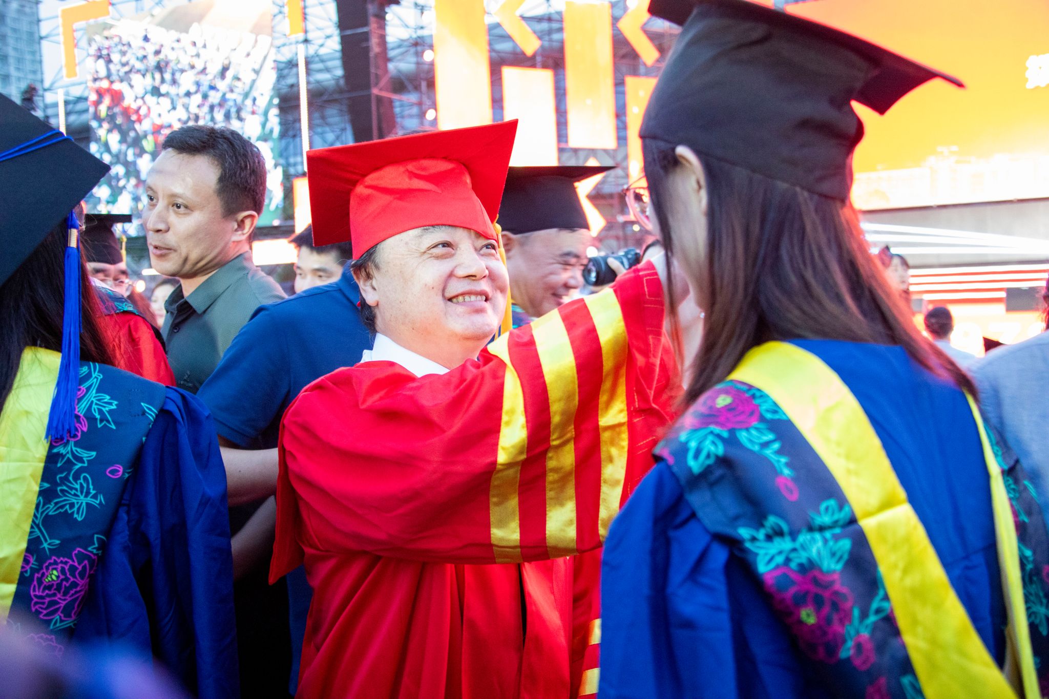 凤凰花开,骊歌再起。前路漫漫亦灿灿,以毕业为名再出发。6月13日晚,学校举行2024届毕业典礼暨学位授予仪式,校长徐江荣,校党委副书记肖刚、程刚,副校长葛洪良、王迪钊、王斌锐,校纪委书记马春波,副校长王新庆,校党委委员、宣传部部长陈永强,校党委委员、组织部部长王乐,校友代表、毕业生家长代表、教师代表,各学院、各职能部门负责人,以及毕业班辅导员、班主任,2024届全体毕业生参加仪式。2.9万人通过学校官方视频号同步观看了毕业典礼网络直播。