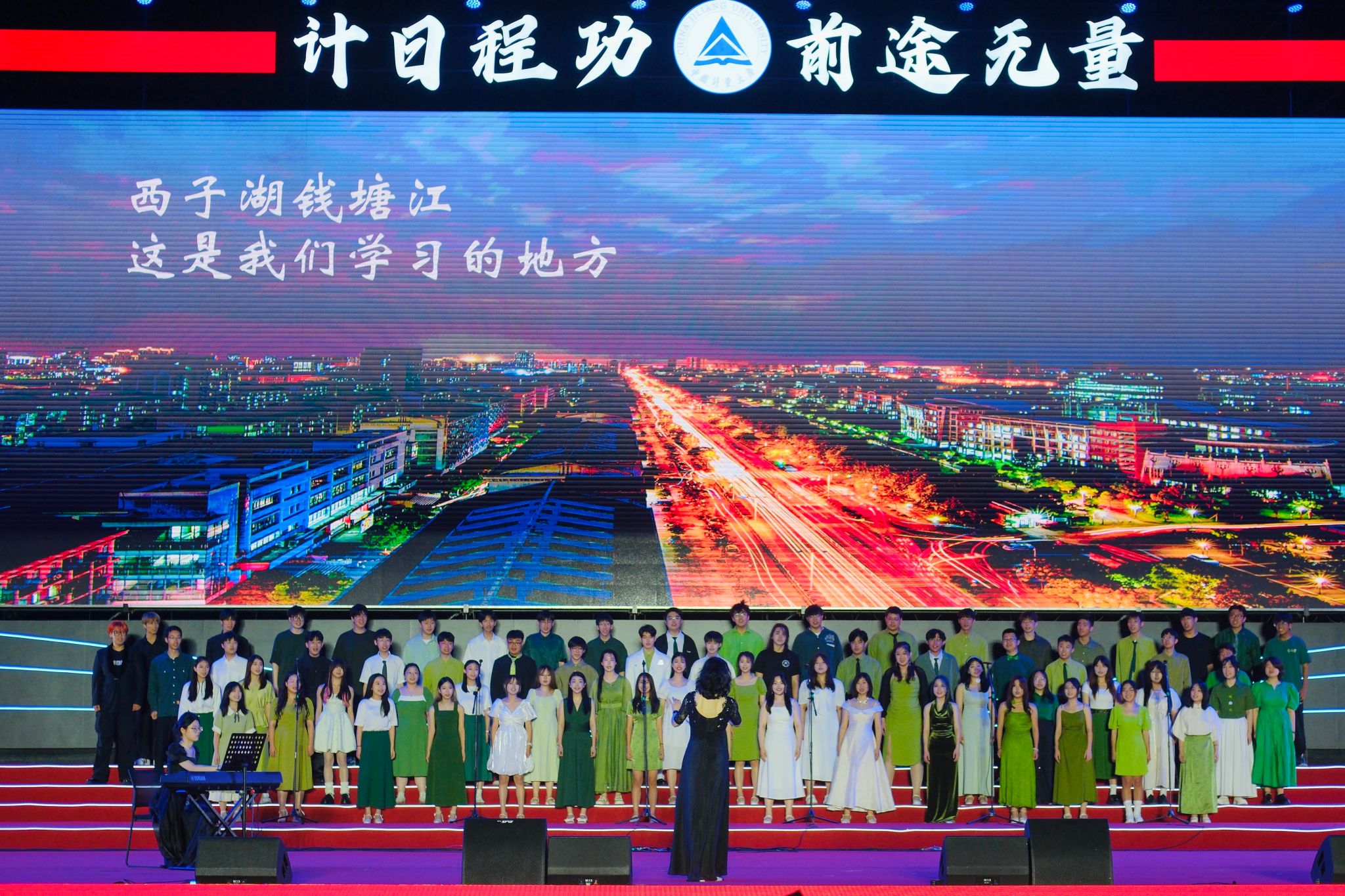 2018届标准化专业校友殷敏朱丞和毕业生代表一起,带来歌曲《再见计量》。2017年,殷敏朱丞正值大三,却开始对一年后自己的毕业有了不舍。身为独立原创音乐人的他,想把对学校的感情、对未来的期许写成歌,“虽然当时还没有学长学姐的感触那样强烈,但是每一句歌词都有着我的校园情结。”殷敏朱丞回忆道。“六月蝉鸣,东西两向,空空荡荡的街上。挥手告别,背上行囊,相拥难舍难忘……”20岁时写的歌,如今再度唱起,求学的日子仿佛电影倒带,又一次清晰地出现在眼前。