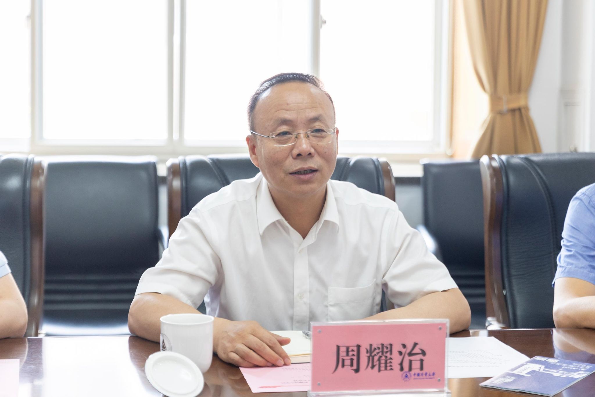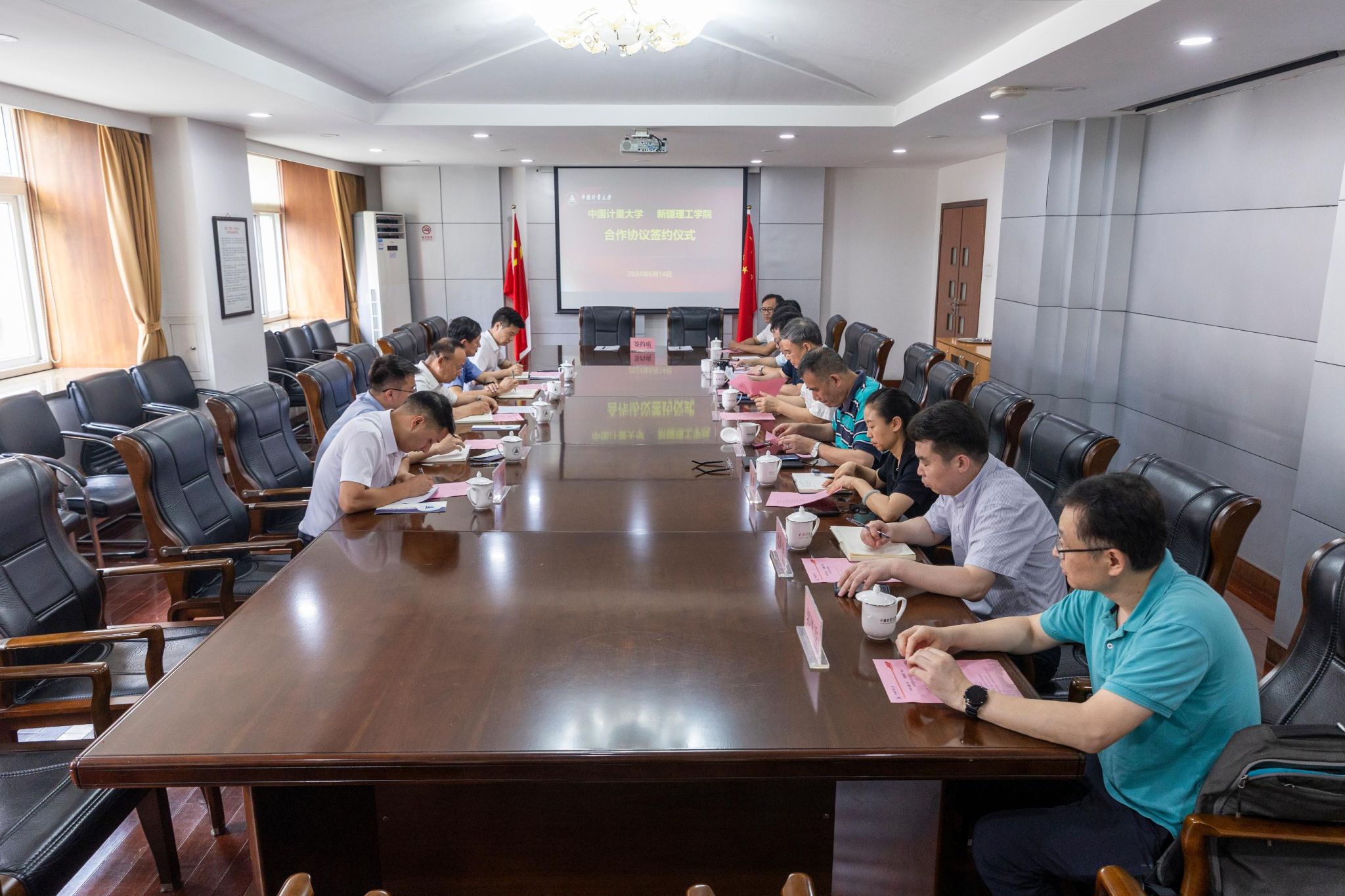 肖刚代表学校向周耀治一行的到来表示热烈欢迎,对新疆理工学院予以我校援疆教师的关心关怀表示感谢。他从历史沿革、办学规模、人才队伍、学科特色与平台、科研专长、服务市场监管事业发展等方面简要介绍了学校概况。他指出,中国计量大学牢记殷切嘱托,紧紧抓住“老本行”,聚焦特色教育科研与社会服务,近年来实现了高质量发展。他表示,我校与新疆理工学院合作基础深厚,合作关系紧密。2015年以来,学校先后选派8位教师赴新疆理工学院开展对口支援,圆满完成了相关工作任务,多位老师受到了新疆当地政府和我校上级主管部门的表彰。此次合作协议的签署,标志着双方合作将进入一个新阶段,希望双方加强特色互补,推进务实合作,携手共同发展。