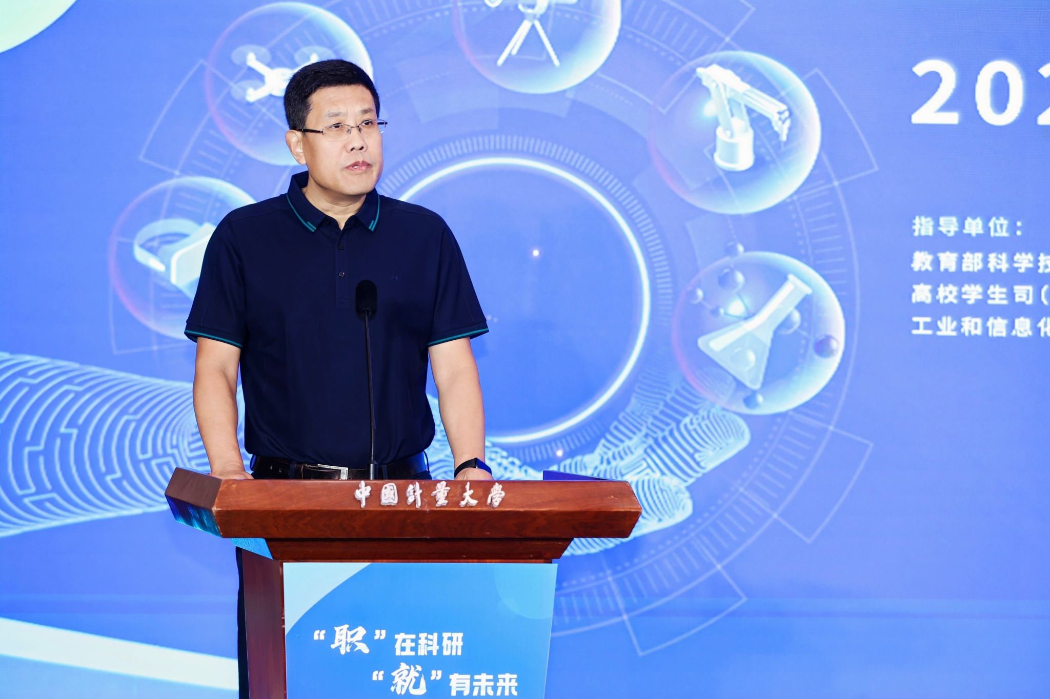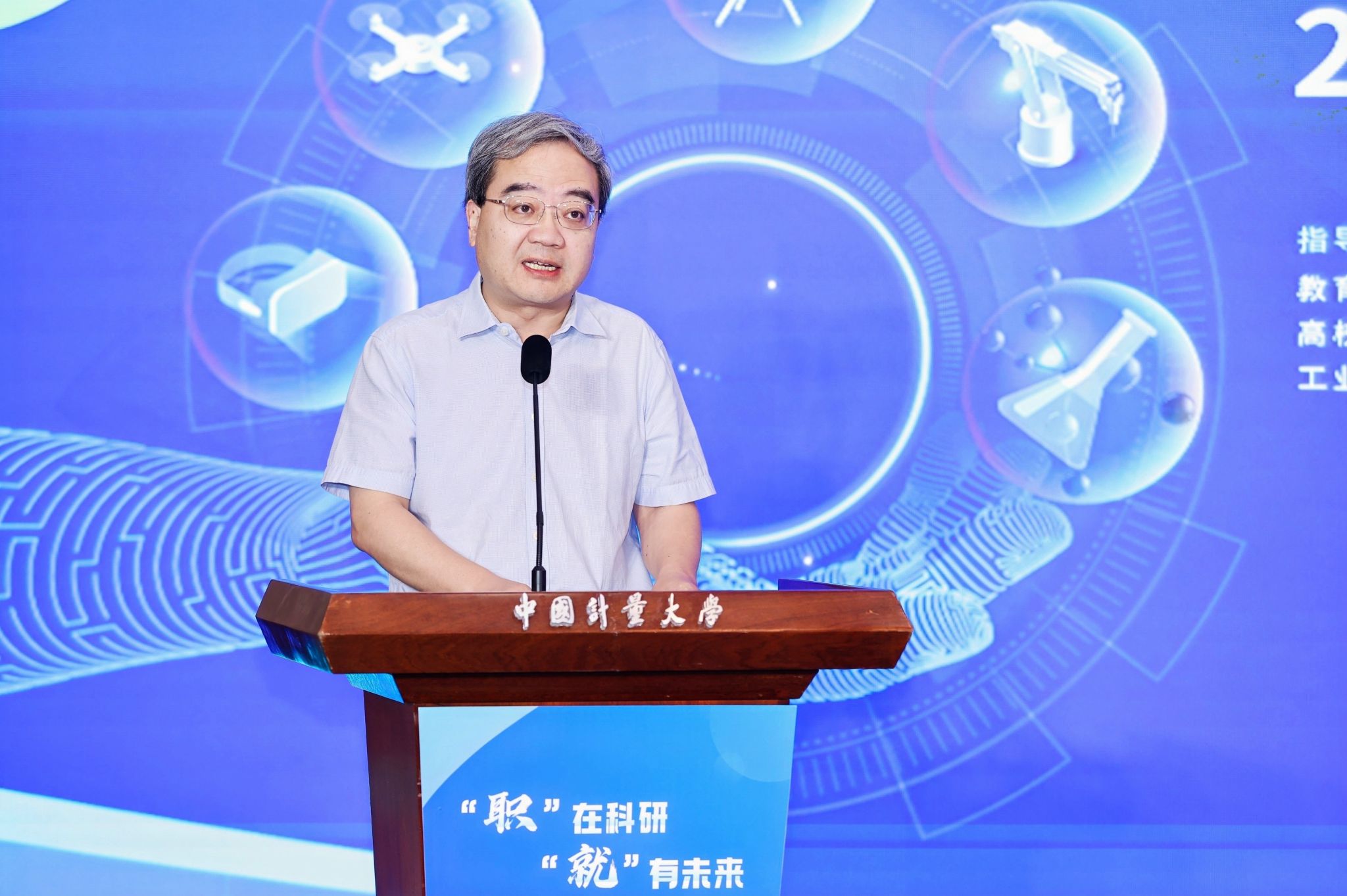 教育部科学技术与信息化司一级巡视员张国辉,教育部高校学生司(高校毕业生就业服务司)副司长苟人民,工业和信息化部规划司副司长吴家喜,浙江省教育厅副厅长陈峰,浙江省经信厅二级巡视员孙自强,杭州临江高新区管委会副主任、钱塘区委常委、副区长徐进,中国计量大学党委副书记程刚,副校长葛洪良等领导出席仪式。