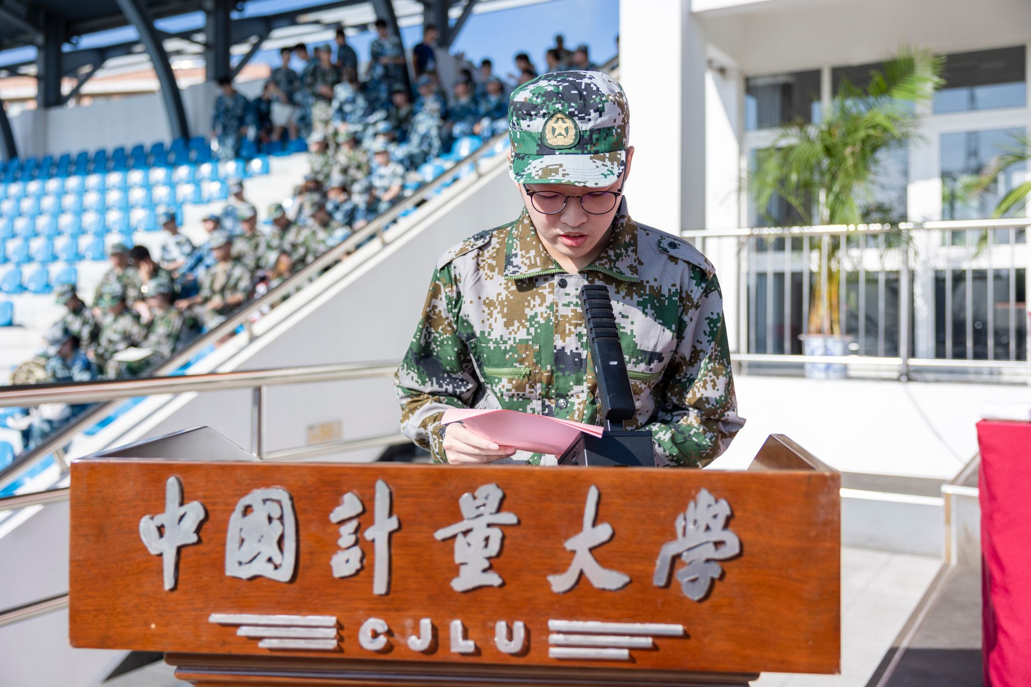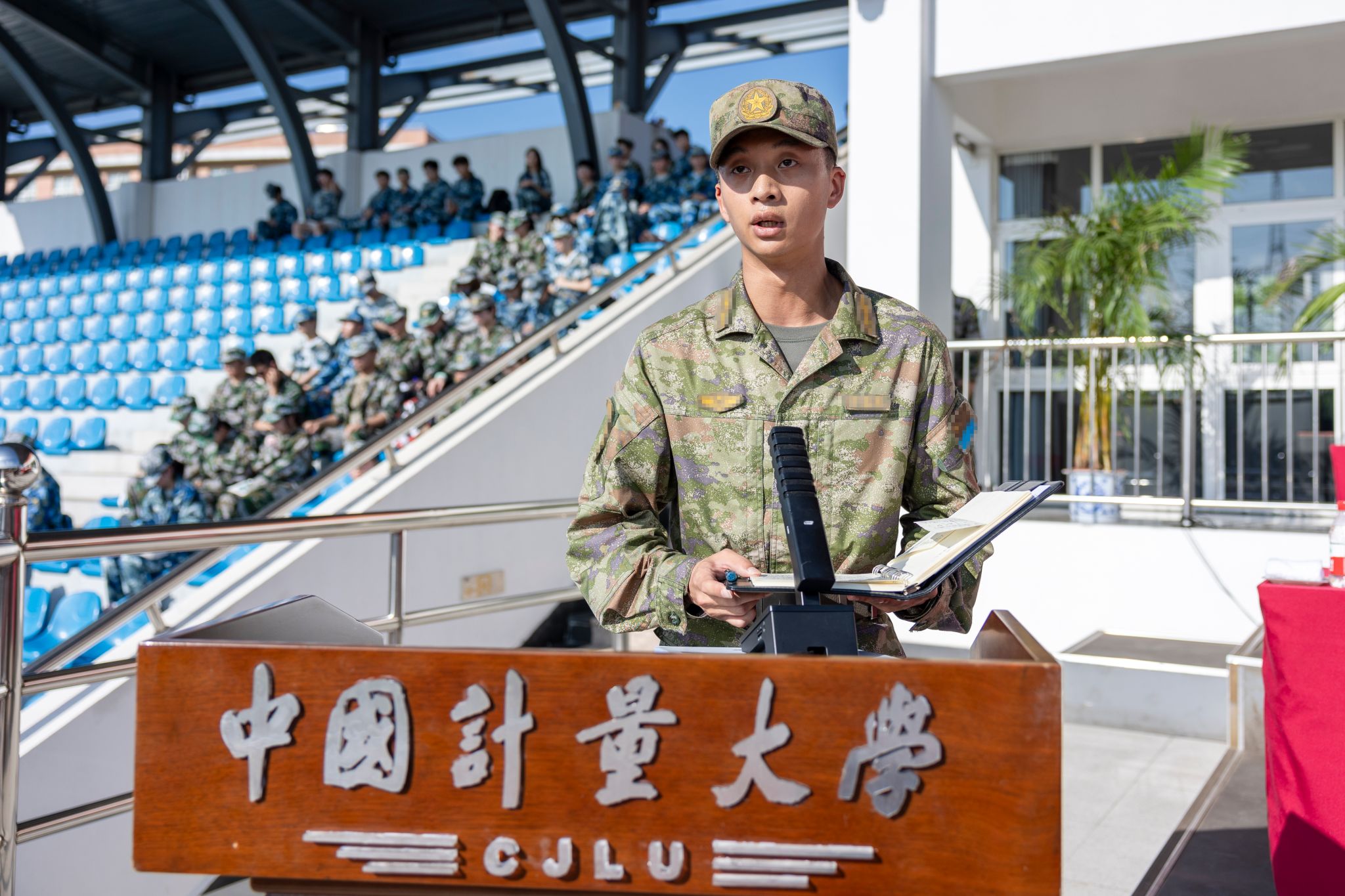 陈刚宣读军训师建制和任命书。军训教官代表与新生代表依次上台发言。
