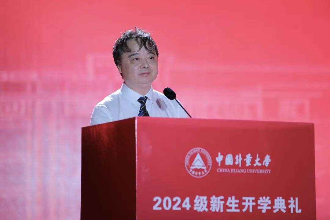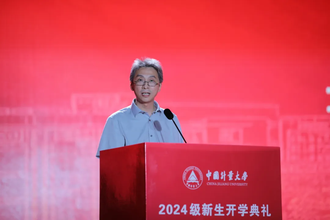“在入校之际我郑重宣誓,我是中国计量大学的学生,我愿秉承‘精思国计、细量民生’的校训,我愿弘扬‘严格严谨、求实求新’的校风,我愿传承‘励志笃学、求真诚行’的优良学风……勤奋学习,全面发展,努力成为堪当民族复兴重任的时代新人。”法学院法学专业2024级本科生俞子扬上台领誓,2024级全体新生一起举起右拳,澎湃激昂的入学宣誓回应使命召唤,将成为每一位量大人“知行合一、学以成人”的行动指南。