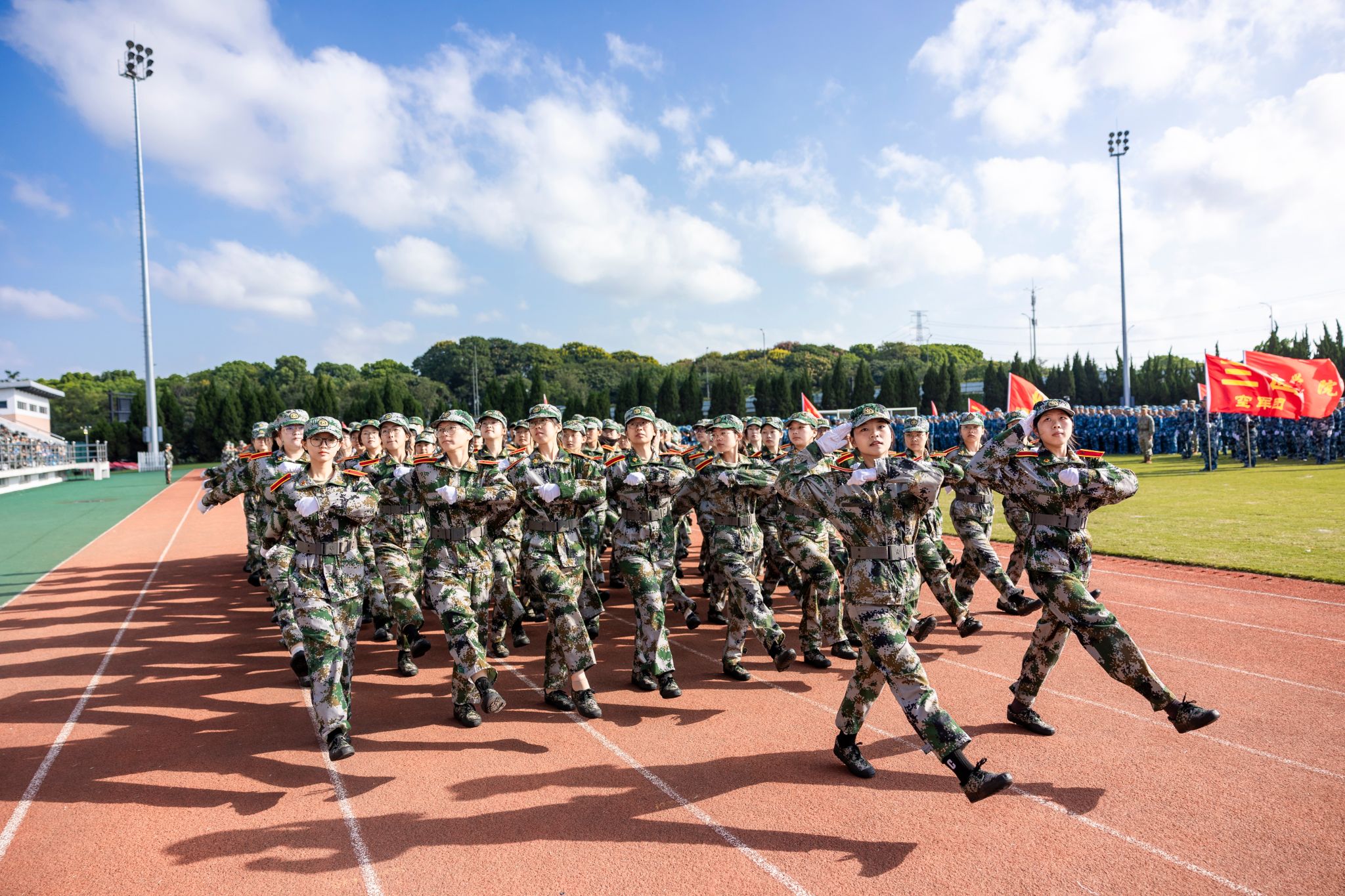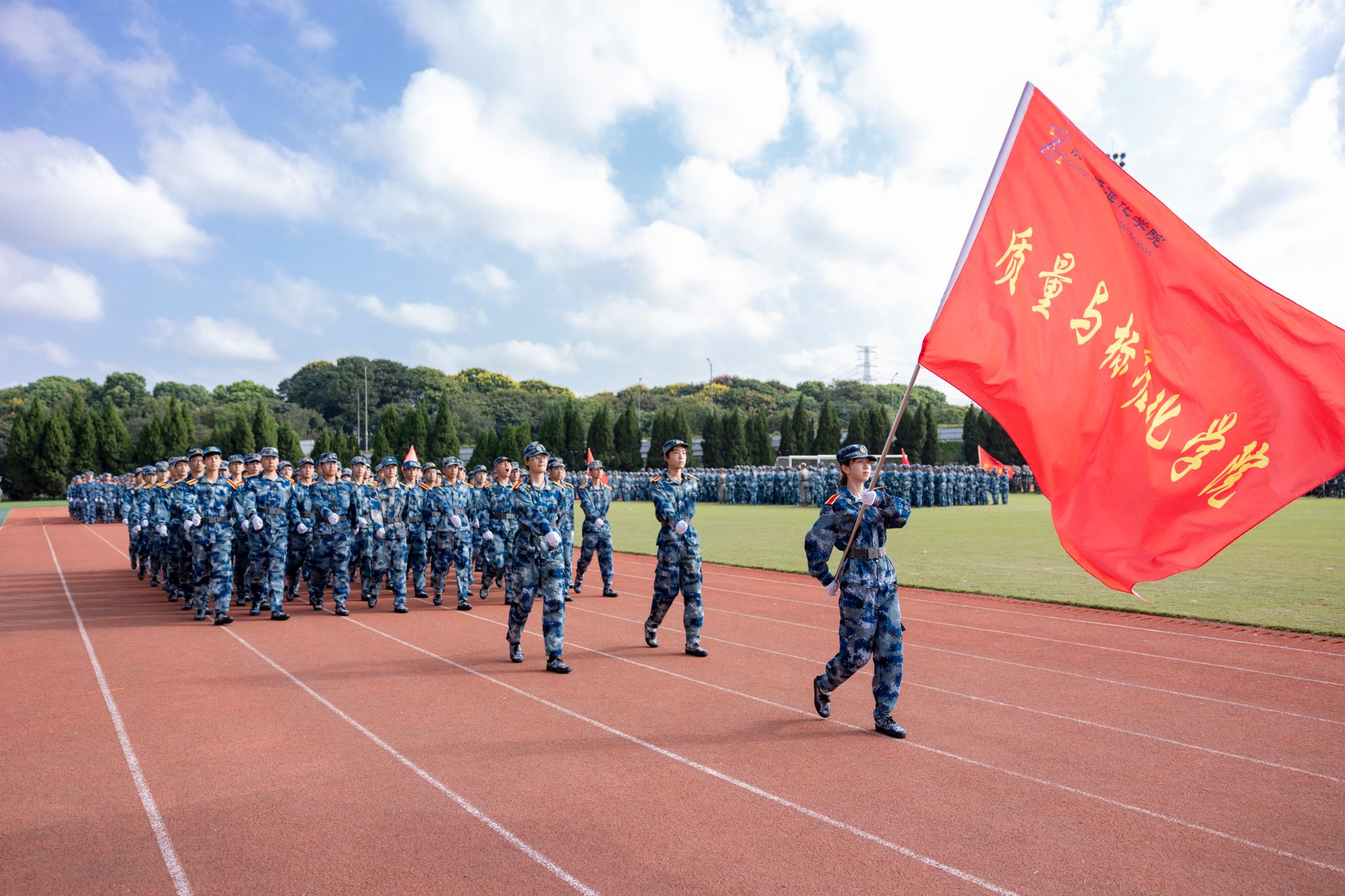 王新庆作军训总结讲话。他表示,在军训生活中,同学们发扬艰苦奋斗、顽强拼搏的精神,经受住了烈日和高温、台风和雨水的考验。在训练中强健体魄,在磨砺中突破自我,完成了各项军训科目,掌握了基本军事技能,增强了组织纪律性,巩固了国防观念和集体主义观念,培养了吃苦耐劳、坚持不懈的品质,形成了团结协作、顾全大局的优良作风。他希望同学们要积极向上,健康生活。保持健康的生活方式,让优秀成为一种习惯。要勤学笃行,求是创新。努力掌握科学文化知识和专业技能,以脚踏实地打牢学业根基,以创新思维练就过硬本领。要珍惜当下,天道酬勤。军训只是入学第一课,要通过辛勤学习去认清自我,提升自我,超越自我。