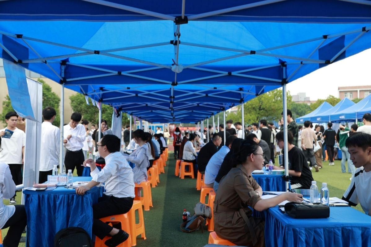 为搭建用人单位来校招聘平台,促进毕业生高质量充分就业,学校凝聚多方资源和力量,在招聘会现场设置生涯“规划站”、政策“宣介区”、导师“面对面”、职场“金名片”四大服务,从生涯目标制定、就业政策了解,到简历制作、面试指导、简历投递,实现全流程覆盖,为毕业生提供全方位、精准化、一站式就业服务,帮助学生走好就业求职路。