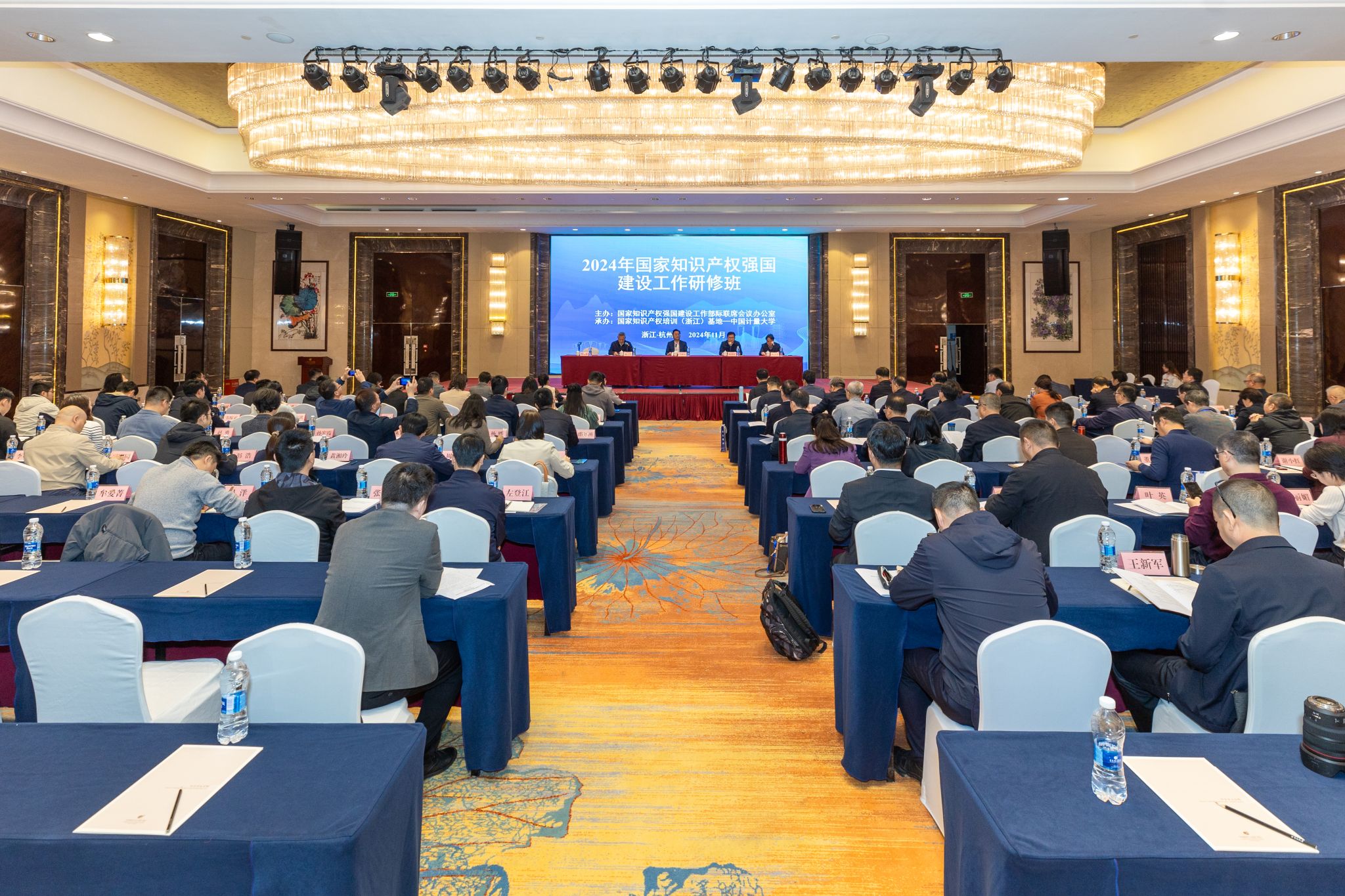 11月5日至8日,由国家知识产权强国建设工作部际联席会议办公室主办,中国计量大学、国家知识产权培训(浙江)基地承办的2024年国家知识产权强国建设工作研修班在杭州举行。来自中央宣传部、最高人民检察院、工业和信息化部、生态环境部、农业农村部、文化和旅游部、海关总署、市场监管总局、中国证监会、国家机关事务管理局、中国科学院、国家林业和草原局、国家邮政局、国家中医药管理局、国家药监局、中央军委装备发展部、中国科学技术协会、中国贸促会等国家知识产权强国建设工作部际联席会议各成员单位及相关单位,以及全国32个省、自治区、直辖市和新疆生产建设兵团知识产权工作单位的负责人等115人参加培训。