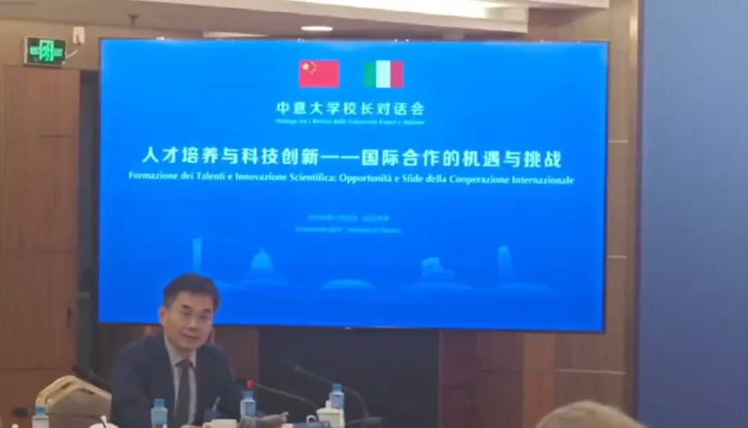 在“人才培养与科技创新——国际合作的机遇与挑战”论坛上,王斌锐作题为“强强联合,共创中意高校合作美好未来”的交流发言。