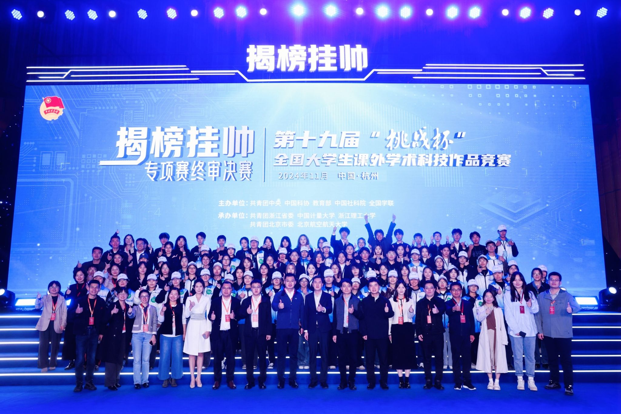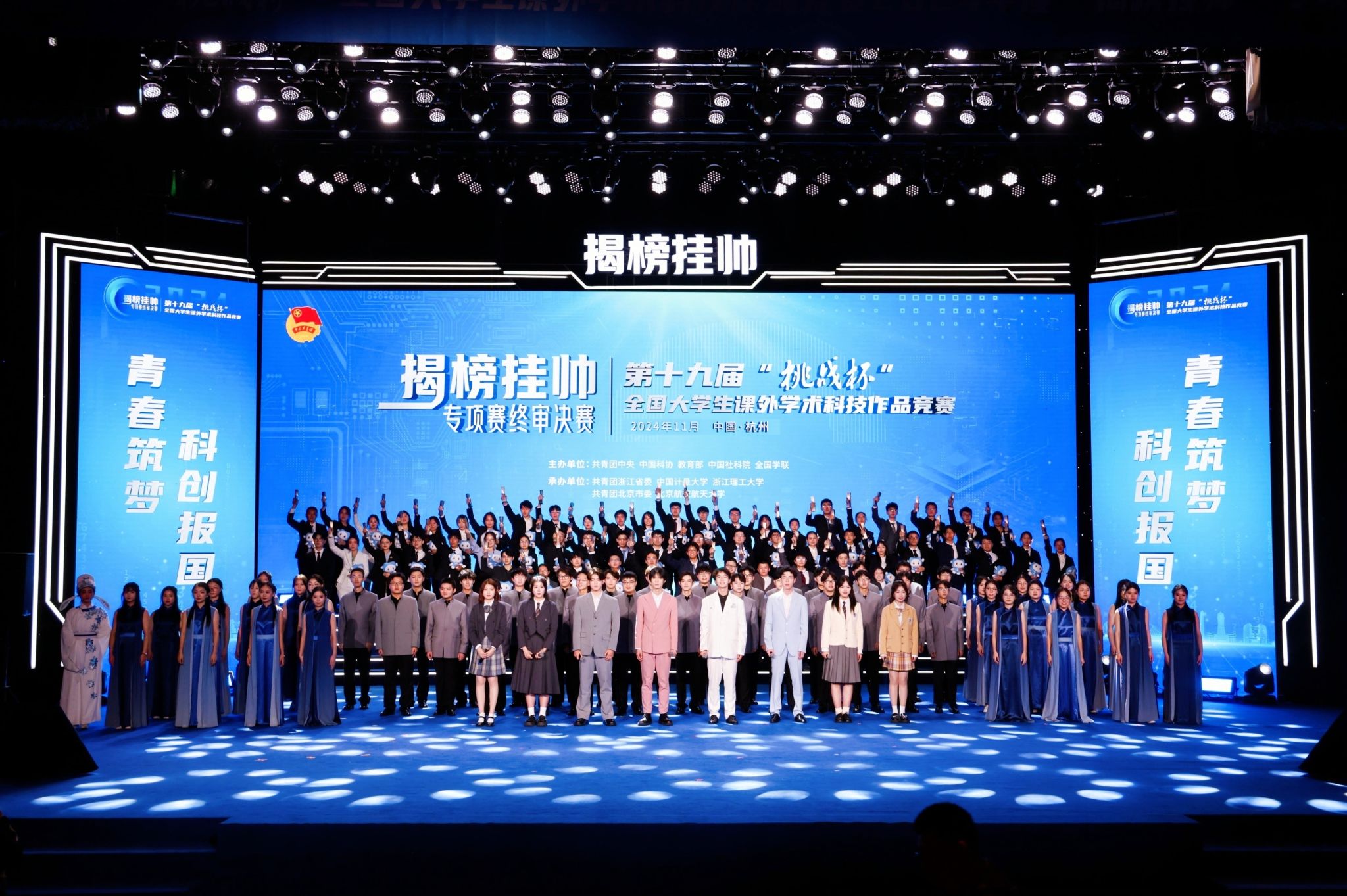11月17日,第十九届“挑战杯”全国大学生课外学术科技作品竞赛2024年度“揭榜挂帅”专项赛终审决赛在我校落下帷幕。经过激烈的角逐,我校共有24个项目入围终审决赛,最终斩获特等奖5项,特等奖数量位列全省第二,其中“揭榜挂帅”擂主2个(特等奖中得分第一),擂主总数位列全国第五、全省第二,是我校在“挑战杯”竞赛“揭榜挂帅”专项赛中取得的历史性突破。