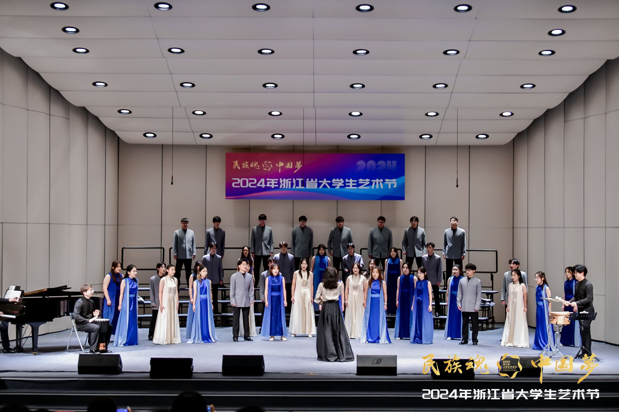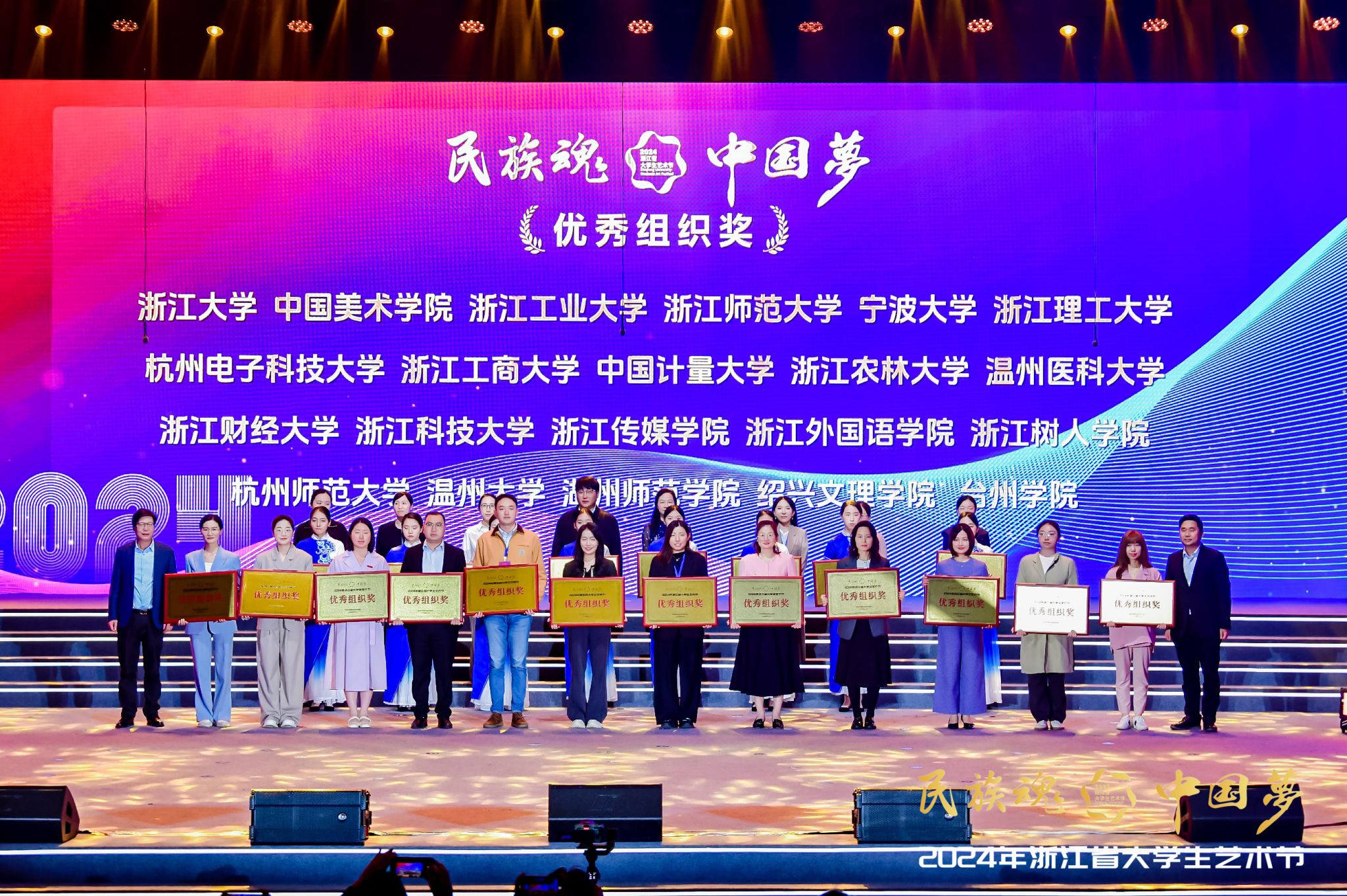 11月4日,由省教育厅、省文化和旅游厅、团省委共同主办的2024年浙江省大学生艺术节在浙江中医药大学顺利闭幕。我校荣获一等奖2项、二等奖6项、三等奖2项,优秀歌手1项,学校获优秀组织奖。其中,校大学生艺术团均钟合唱团的一等奖声乐作品《雨之水舞》参加闭幕式演出。
