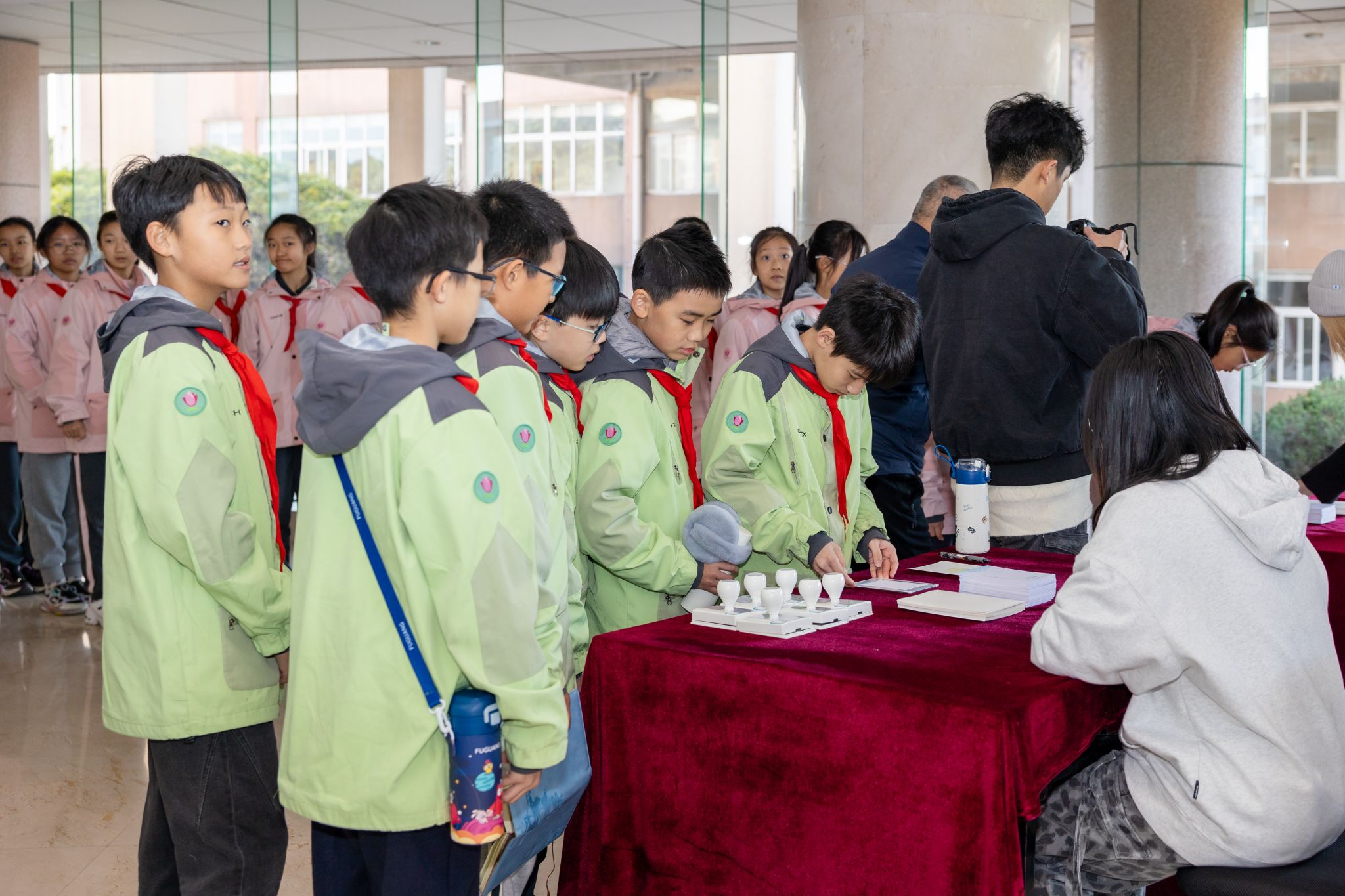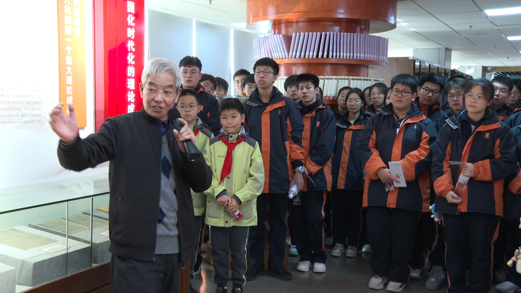 “做新时代的好少年,下列说法错误的是?”“办好中国的事情,关键在什么?”大型光影问答系统互动装置前,同学们热情参与,争先恐后作答;跟随讲解员的脚步,同学们认真聆听,感悟真理的力量。来自杭州市采荷第一小学的胡家齐认真记录着墙上的名人名言,“之前我以为马克思主义是马克思一个人创造的,今天知道了马克思主义的创立与发展历程,学到了很多新奇的知识,让我大开眼界。”