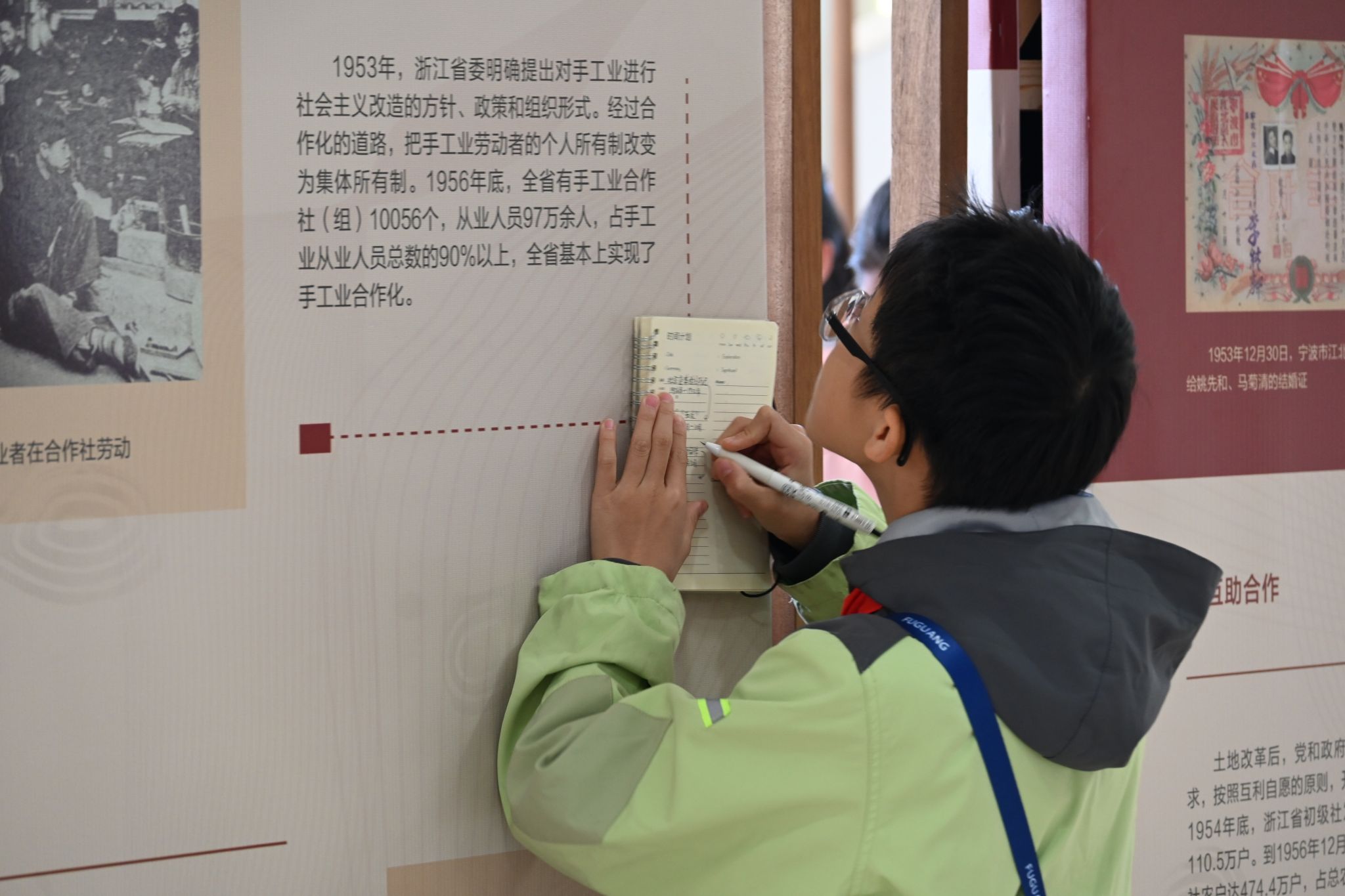 来自中国计量大学、杭州市第九中学、杭州市采荷第一小学的百余名大中小学生通过一件件革命文物和时代见证物的照片,回望自新中国成立以来,浙江在社会主义革命、建设和改革中的辉煌历程、非凡足迹,感受那段峥嵘岁月。