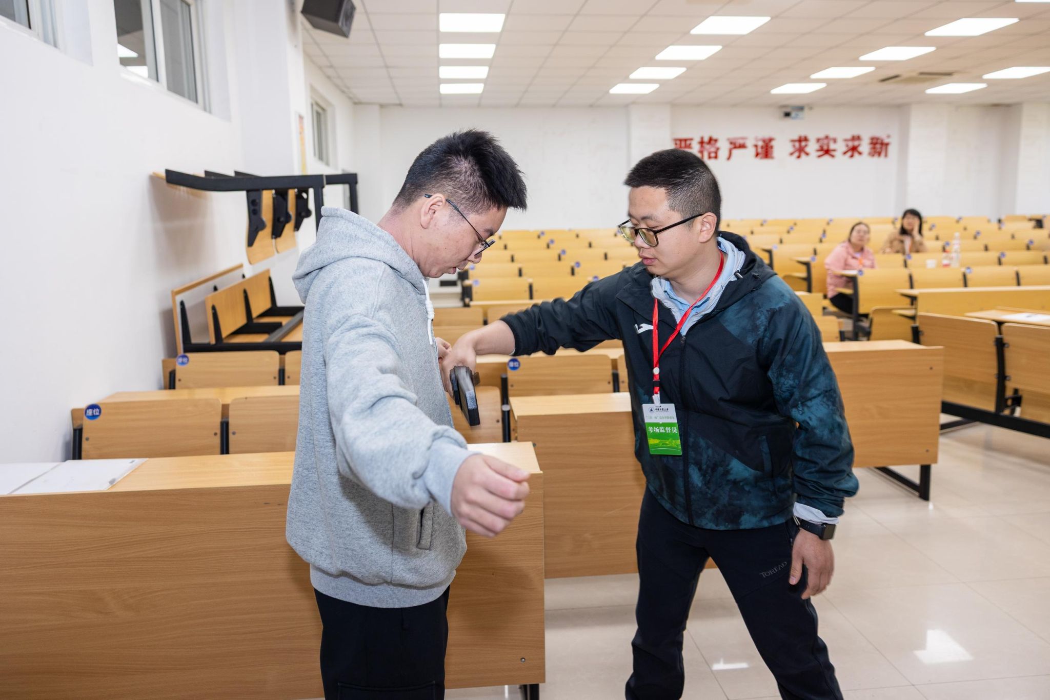 在众多学生中,今年有一位特殊的考生。来自萧山第三高级中学的胡同学在考试前腿部受伤,学校了解情况后立即安排工作人员全程陪同,志愿者们帮忙拿轮椅和物品,他的母亲也非常感激学校的帮助。坐在轮椅上的他没有紧张和担忧,“面试总体发挥得还不错,我的考场在三楼,有老师和志愿者一直帮助我,让我轻松了很多,我很喜欢中国计量大学的氛围,学校环境也很好,很憧憬!”