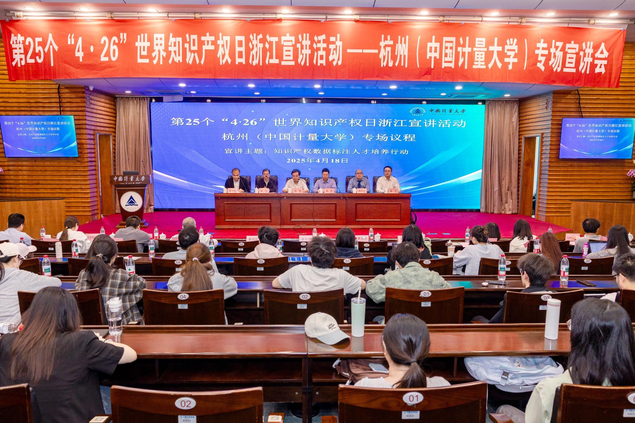 浙江省知识产权局金磊调研员宣布第25个“4·26”世界知识产权日浙江宣讲中国计量大学专场活动启动。