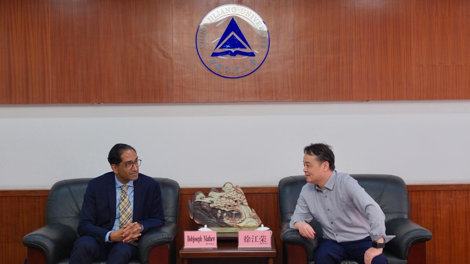 Mathew主席对我校在计量领域取得的成果给予高度评价。他表示,此次访问给他留下了深刻印象,尤其是学校在计量文化传播方面的积极探索与实践令人赞叹,无论是计量博物馆的建设,还是校园环境处处体现的计量元素,都展现了学校深厚的专业积淀与文化底蕴。他表示,希望未来有更多高校和国际组织能够从中国计量大学的成功实践中获得启发,持续加强计量文化的传播与交流,共同助力全球计量治理体系的科学化、规范化与协同化建设。
