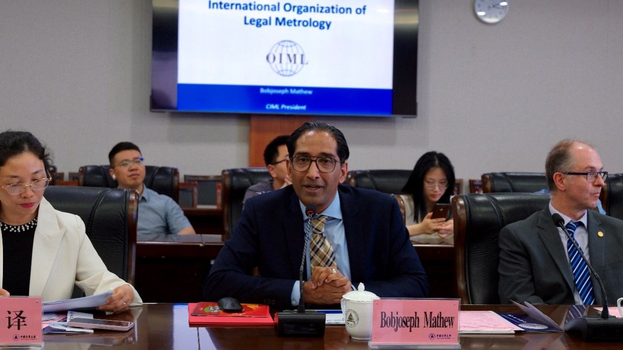 4月24日下午,国际法制计量组织(OIML)国际法制计量委员会主席Bobjoseph Mathew、国际法制计量局副局长Paul Dixon一行来我校交流访问。国家市场监督管理总局计量司原副司长、一级巡视员刘新民,总局计量司相关处室负责人,中国计量科学研究院、上海计量测试技术研究院等单位代表共同出席交流活动。校党委书记徐江荣、副校长王斌锐参加接待,国际处、国际学院、计测学院相关负责人参加会谈。