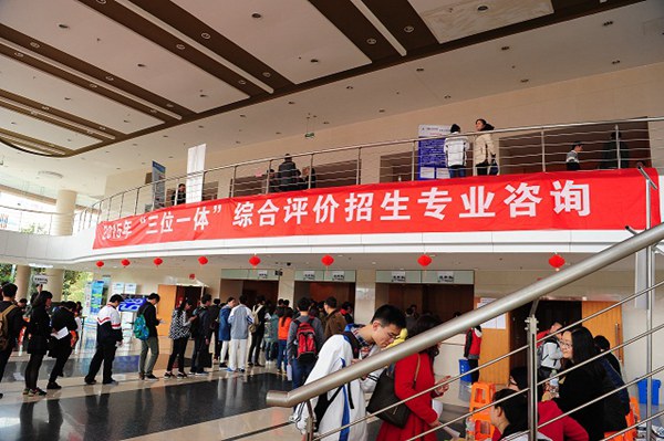 “三位一体”招生校内综合测试也是学校面向考生和家长宣传的一次好机会,学校为此投入了大量的人力物力做好各项工作,安排了100多位工作人员和志愿进行服务,周到的安排和人性化的服务,也获得了考生和家长的好评。