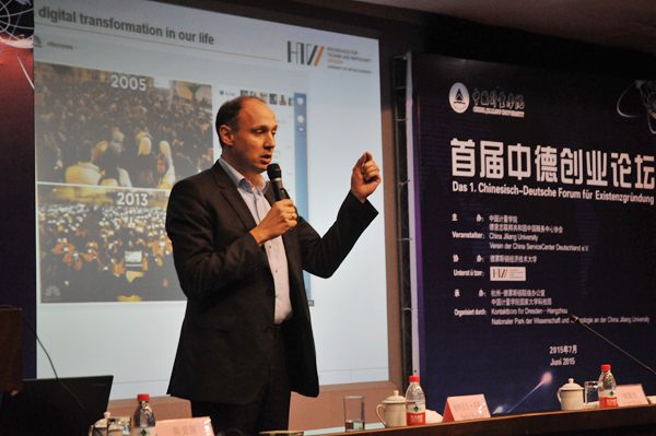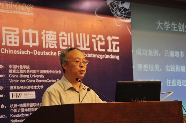 7月1日上午,“首届中德创业论坛”在我校举行。来自中德两国的教育学家、创业导师等,与我校的200余位师生面对面交流,共同分享创新创业实践经验。本次论坛由我校和德国中国服务中心协会主办。浙江省教育厅副厅长朱鑫杰、全国高校毕业生就业协会副理事长王炽昌、德意志联邦共和国中国服务中心协会主席姚豫杰、校长林建忠教授、德累斯顿工业大学特雷夫·考贺汉教授、德累斯顿经济技术大学的迪雅克·日邂尔特教授、中国大学生创业导师陈爱国等出席论坛。会议由校党委副书记陶伟华主持。