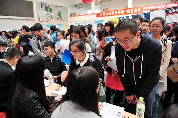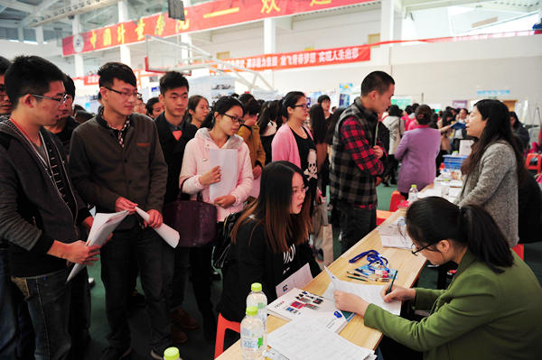 校就业办工作人员告诉记者:“今年用人单位提供的工作岗位有所增加,但是应聘的大学生相比往年增幅更大。企业在招聘时对应聘者的专业技术要求会放宽,但是综合素质要求会更高。相比能力,企业更加看中的是应聘者的潜力。”来自经管学院的杨捷同学也表示:“从用人单位面试提出的问题,感觉到其实企业更加青睐主动积极、求知欲强、有上进心的求职者,看中情商多过智商。”