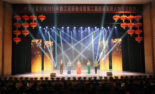 “徜徉天问,在极深研几之间畅想中国梦;传道环宇,在授业解惑之间实践中国行;守望家园,在默默奉献之间传递中国爱。”1月9日晚,2015年“计算感动,量度幸福”教工迎新晚会在嘉量大会堂隆重举行。晚会以“畅想中国,梦筑计量”为主题。学校党政领导与千余名教工及家属欢聚一堂,共迎新年。