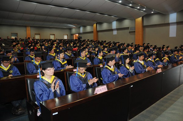校学位评定委员会主席、校长林建忠教授在授予仪式上深情寄语毕业生。他代表学校对获得硕士学位的研究生们表示热烈祝贺,向精心指导、培养研究生的各位指导教师和管理者们表示诚挚的谢意。他表示研究生是学校飞速发展不可或缺的一员,他对研究生们为学校的发展做出的贡献表示衷心的感谢。作为临别赠言,林建忠校长告诫毕业生们要有“四心”:第一是慧心(wisdom),只有具备了慧心,才能做出符合自身需要的判断,才不会有那么多的遗憾和失落感,而慧心来自于读书、实践和思考。第二是信心(confidence),他告诫同学们在困难和挫折面前要有信心,信心是一种积极的心境,有信心就不会轻易消沉沮丧,就能努力奋发,从而克服一切困难,实现自己的愿望。第三是恒心(perseverance)要想成功,要想得到与众不同的东西,要想成为与众不同的人,其过程往往是枯燥的、重复的,这就需要恒心。第四是虚心(modest),当一个人有了一点成就之后,一定要虚心,要有自知之明,这不仅是一种最合理的姿态,更重要的是这能使你保持一颗进取心,从而使自己达到一个更高的境界。最后,林校长祝愿同学们一帆风顺,顺利达到理想的彼岸。林校长通过丰富的事例,引经据典,给毕业生们上了生动而深刻的一课,得到了同学们的热烈掌声。
