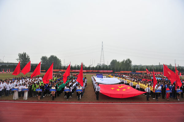 10月31日,我校第二十七届运动会田径比赛在北田径场开幕。学校领导、校运动会主席团成员在主席台就座。开幕式由党校办主任杨政主持。