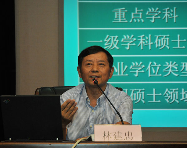 校长林建忠作了学校工作报告,简明清晰地回顾了学校“十二五”规划主要发展目标的落实及完成情况,着重论述了招生工作、研究生教育质量、本科专业设置、学生 科技创新、国基金项目、高水平论文、申请博士学位授予权的发展态势和工作思路,并盘点了今年教学、科研、学科建设、人才队伍建设等重点工作进展,最后以“飞龙在天”、“敝帚自珍”、“道不欲杂”、“进而有道”等阐述了我们在今后学校发展中应有的工作态度和自信心。