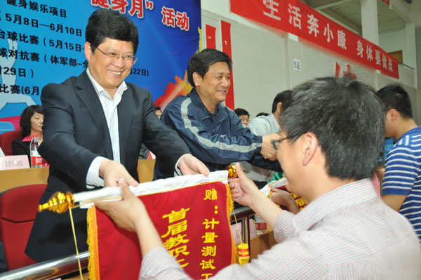 校领导代表组委会给机电工程学院、信息工程学院、计量测试工程学院三个赞助单位赠送了锦旗。