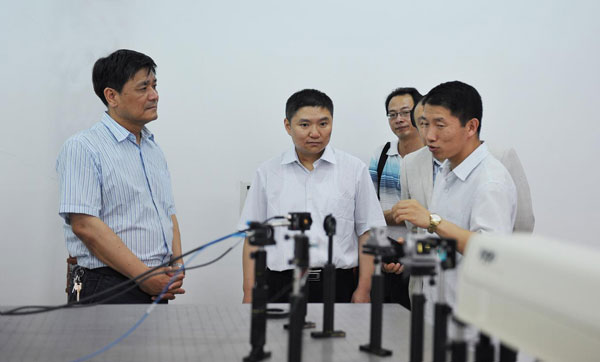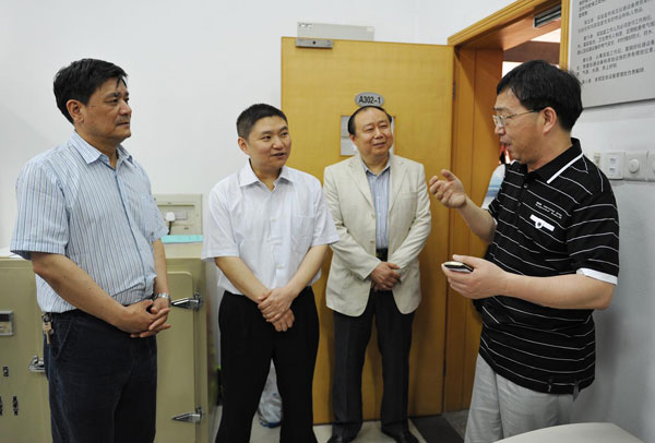 朱林森一行在胡建成、俞晓平的陪同下,参观了计量测试技术与仪器教育部工程研究中心、海洋食品加工质量控制技术与仪器浙江省工程实验室、浙江省在线检测装备校准技术研究重点实验室和计量史馆、校史馆,并与实验室负责人进行了深入的交流。考察组对学校在光电产品、海洋食品质量控制、在线检测等方面的科研成果给予充分肯定,对学校的计量文化表现出了浓厚的兴趣。朱林森市长表示,通过实地考察,对学校的科研成果和特色文化留下了深刻印象,他希望双方进一步搭建合作平台,充分发挥学校的智力优势和地方的产业优势,推动校地科技合作和人才培养。胡建成书记、俞晓平副校长分别简要介绍了学校的基本情况和科研情况,并表示要加强双方的合作,发挥学校的优势,更好的服务平湖市经济社会发展。