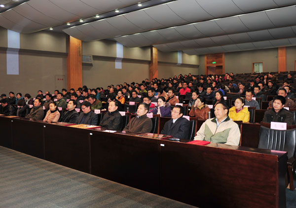 12月19日下午,我校创先争优活动总结表彰大会在闻厅二楼小报告厅隆重召开。校长、党委副书记林建忠,党委副书记徐涌金,副校长蒋家新、冯时林、宋明顺,党委委员、组织部长陈希武出席大会,全体中层干部、党总支委员、教工党支部书记、先进党组织和优秀共产党员代表等参加大会。会议由党委副书记徐涌金主持。