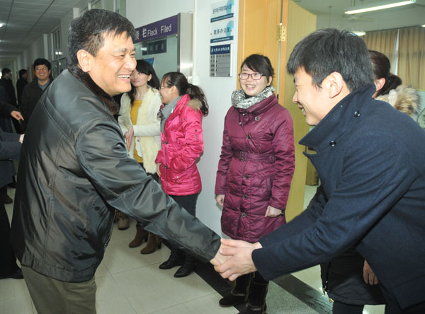 2月22日,正月十三。在结束了愉快的寒假生活后,学校教职员工在新学期正式上班。上午8:30分,学校党政领导来到各二级学院亲切看望教职员工,给大家拜个晚年,并送上新春的问候与良好的祝愿。每到一处,校领导们都与教职工进行亲切交谈,并详细询问教职工们春节期间的工作和生活情况。尤其是在走访体军部时,校党委书记胡建成对体军部负责人着重强调,提高教学质量首先是要提高学生身体素质。