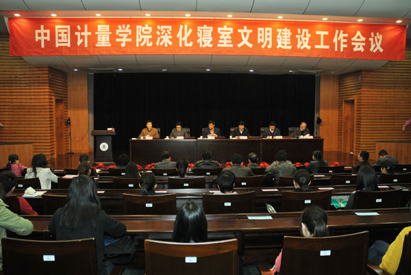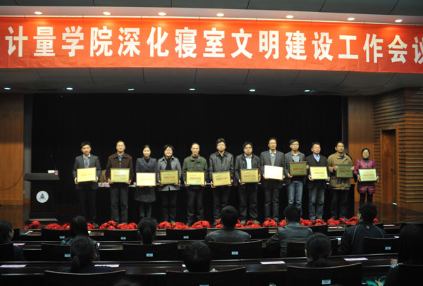 会上,副校长宋明顺宣读了《中国计量学院关于表彰文明寝室建设工作先进单位和个人的决定》。校领导为先进集体、先进个人代表、优秀寝室导师、优秀寝室导生、“2012年校级卫生优秀寝室”和“2012年家装优秀寝室”获奖寝室成员代表颁奖。
