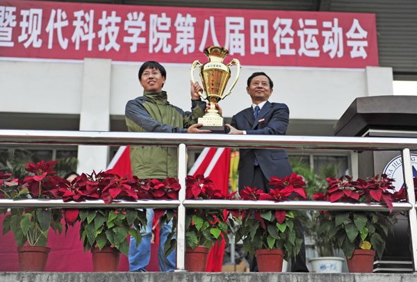 在本次运动会中,经济与管理学院获得了我校第二十六届运动会田径比赛学生组总成绩第一名,计测学院、质安学院分获二、三名;现代科技学院分工会获得了第二十六届运动会田径比赛教工组总成绩第一名,机关分工会、计测学院分工会分获二、三名;经济与管理系获得了我校现代科技学院第八届田径运动会学生组总成绩第一名,机电工程系、计测工程系分获二、三名。最后,计量测试工程学院获得了我校第二十六届运动会团体总分第一,夺得了“计量杯”。此外,大会还宣布了体育道德风尚奖和优秀组织奖获奖个人、单位名单。学校领导向获奖单位代表颁发了奖杯和奖牌。