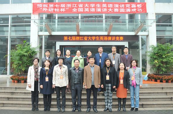 浙江省大学生英语演讲竞赛暨“外研社杯”全国英语演讲大赛浙江省复赛是省内高级别、高规格、高权威的英语演讲比赛。本次大赛共吸引了省内52所学校的139名选手参加。大赛由浙江省大学生科技竞赛委员会和外语教学与研究出版社主办,浙江省高校外国语言文学类专业教学指导委员会、浙江省大学外语教学研究会和浙江大学承办,中国计量学院协办。比赛由中国计量学院外国语学院范星星和王欣两位老师主持。