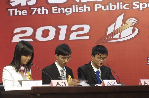 本次比赛分为初赛和复赛两个环节。初赛内容为定题演讲,初赛成绩排名前50%的选手进入复赛,复赛由即兴演讲和回答问题两部分组成。初赛、复赛选手的出场顺序均由抽签决定。全部比赛结束后,总分排名前六位的选手进行了半小时的辩论,最终确定竞赛名次。初赛中,139名选手按照抽签序号一一上台,围绕定题“What We Cannot Afford to Lose”进行演讲。选手们各抒己见,从不同角度阐述了自己对这一演讲主题的理解和感悟,以熟练的英语和恰如其分的演讲震撼了在座的七位评委。初赛结束后,根据分数排名,67位选手晋级复赛。由于即兴演讲和回答外教提问更多考验的是选手临场应变能力和综合知识修养,因此,复赛现场高潮迭起,智慧的火花在赛场内激烈碰撞,选手们以敏捷的思维和宽广的知识面为在场的观众呈现了一场扣人心弦的激情盛宴。