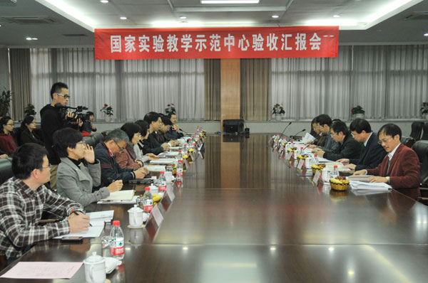 11月22日,浙江省教育厅在我校组织召开了国家级实验教学示范中心验收评审会。专家组由浙江大学韦巍教授、上海交通大学田作华教授、浙江大学顾大强教授、东华大学郭建生教授、浙江工业大学李小年教授、嘉兴学院实验室与设备管理处处长谢林明组成。我校副校长蒋家新教授、教务处、实验室与资产管理处、计量技术实验教学中心、检测与控制技术实验教学中心及光电实验教学中心等相关人员参加了会议。