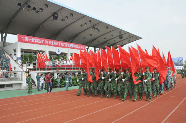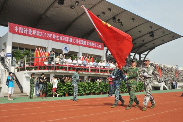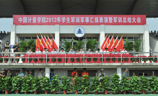 副校长宋明顺作军训总结报告。他首先代表学校,向关心和支持我校军训工作的空28师首长和全体教官表示衷心感谢,向顺利完成军训任务的2012级同学表示热烈祝贺!宋明顺指出, 14天的军训生活,同学们出色地完成了各种军训项目,掌握了各项基本军事技能,培养了艰苦奋斗、勇敢顽强的优良作风,磨砺了百折不挠的意志品质。他强调,这次军训的成功进行,有赖于空军28师和学校各级部门的紧密合作、精心部署,有赖于教官们科学施训、严格管理,有赖于同学们的艰苦奋斗、顽强拼搏。最后,他叮嘱同学们,紧张而短暂的军训生活即将结束,但坚忍不拔、吃苦耐劳、团结协作的计量青年精神,却需要我们持之以恒地坚持和锻炼。