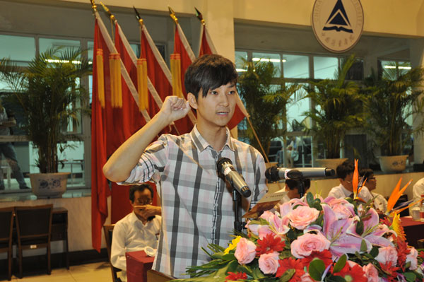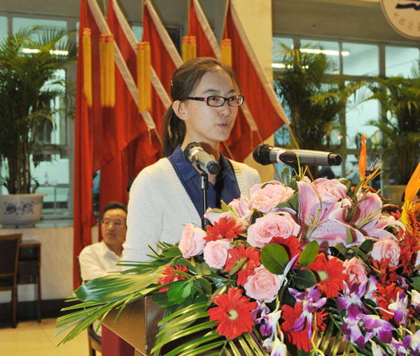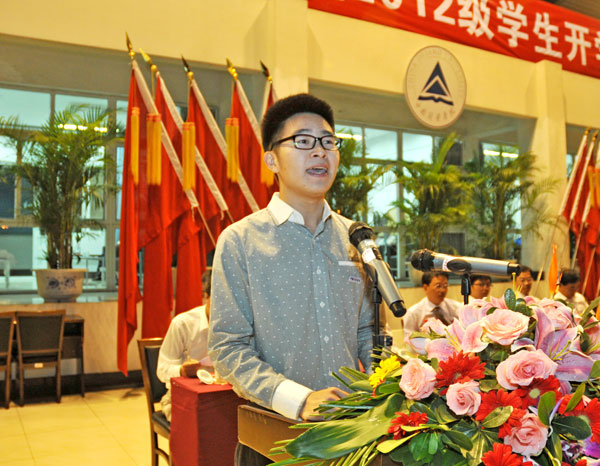 老生代表、校学生会主席侯婉莹,2012级研究生新生代表卢宇晨,2012级本科新生代表来自量新学院的杨春浩,2012级留学生代表来自德国的安娜贝尔分别发言。他们共同表达了新生努力学习、成长成才的愿望,祝愿全体新生在量院的校园里书写出无悔的大学篇章。