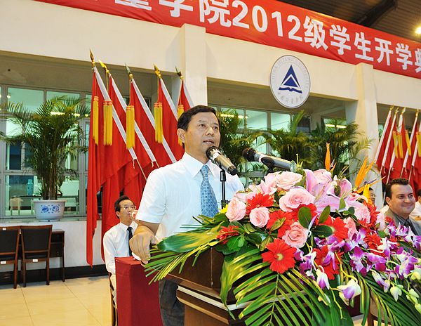 9月17日晚18:00,我校2012级新生开学典礼在北田径场隆重举行。校长林建忠,党委副书记徐涌金,副校长蒋家新、冯时林、俞晓平、宋明顺,纪委书记王小华,党委委员、组织部部长陈希武,党委委员、学生处处长范庆瑜,新西兰奥克兰理工大学代表史蒂芬·约翰·索普博士出席典礼,各二级学院主要领导在主席台就座。开学典礼由校党委副书记陶伟华主持。