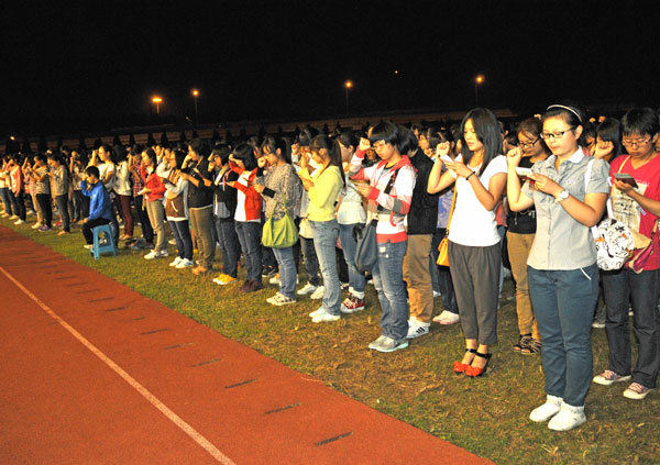 秋桂万里星光路,雏凤清于老凤声。仰望着璀璨夺目、五彩斑斓的烟花,2012级新生将从这里开始崭新的征程,追随着心中不灭的梦想,今日之雏凤,明日必翱翔宇宙,展翅苍穹!