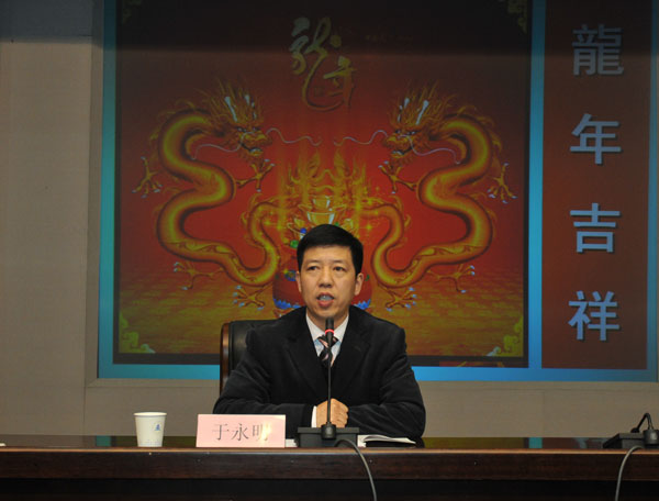 2012年是学校实施五年规划承上启下的重要一年。2月17日上午8:30,学校在闻厅二楼报告厅召开新学期中层干部会议,部署2012年主要工作任务。校领导,中层干部,校级以上(含校级)重点学科带头人,民主党派负责人,正、副处调研员,各学院(部)院长助理、各学院(部、中心)办公室主任参加了会议。会议由党委书记于永明主持。