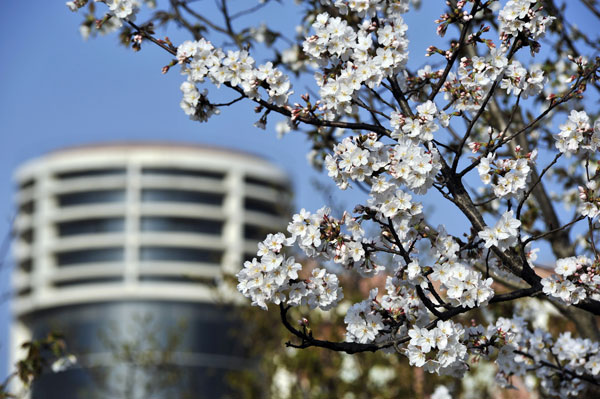初春时节,阳光明媚,这本是出门踏青的绝好机会,但是今年师生们却不用专程去郊外寻花,只要走出教室的大门,校园内处处都是春意盎然的景色。学校大门口校名石碑下,一盆盆的瓜叶菊争相斗艳,翔宇楼前朵朵玉兰花安静地绽放,围栏边的海棠娇柔艳丽,有如晓天明霞。日月湖畔芳草铺地,绿树婆娑,启明广场边樱花烂漫,春风吹过,片片花瓣飘飘洒洒,徐徐落下,瞬间仿佛还能闻到一阵悠然的樱花香味。
