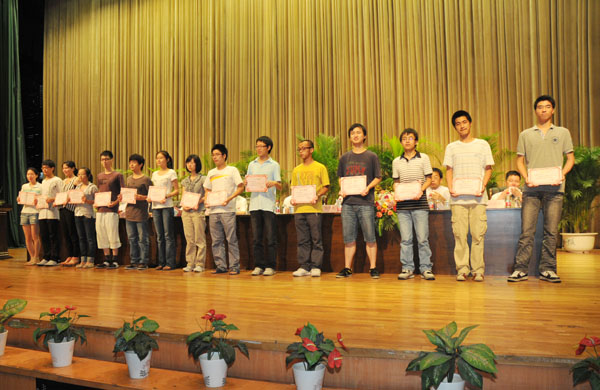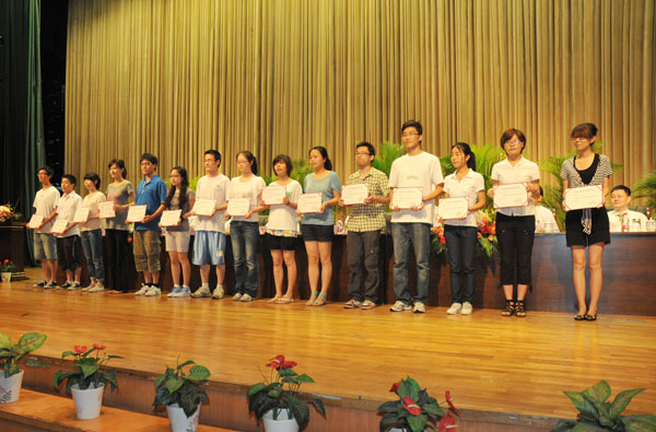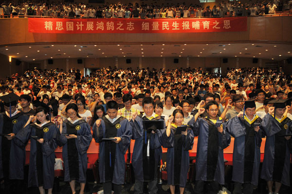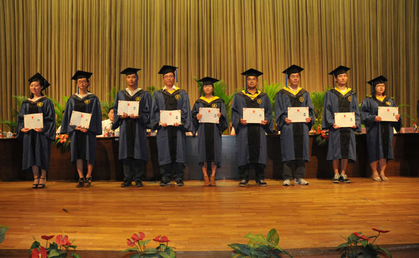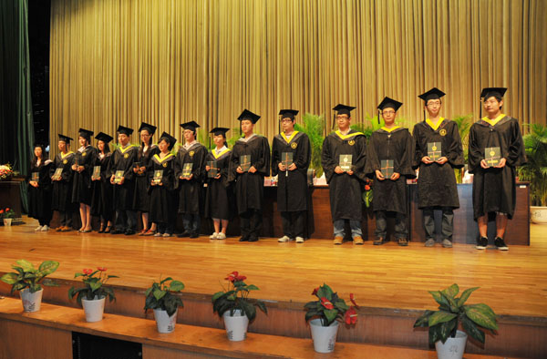 宋明顺在典礼上宣读了省级和校级优秀毕业生表彰决定。学校领导为省级和校级优秀毕业生代表颁发了荣誉证书,为研究生代表颁发了学位证书,为本科生代表颁发了学位证书和毕业证书。