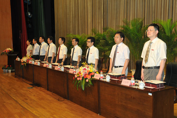 今天上午,我校在嘉量大会堂隆重举行2011届毕业典礼。党委书记于永明,校长林建忠,党委副书记徐涌金,副校长蒋家新、俞晓平、宋明顺,纪委书记王小华,党委委员、学生处处长范庆瑜出席了典礼。相关职能部门负责人,各二级学院院长、书记、分管学生工作副书记、教学副院长,毕业班辅导员、班主任,毕业生代表参加了典礼。毕业典礼由校党委副书记陶伟华主持。