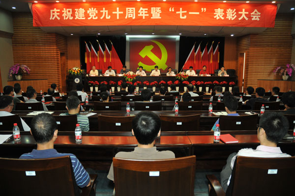 6月28日下午,我校庆祝建党九十周年暨“七一”表彰大会在闻厅二楼小报告厅隆重举行。学校领导班子成员,中层干部,教工党支部书记,民主党派、统战团体负责人,受表彰的先进基层党组织和教工党员出席了大会。大会由党委副书记徐涌金主持。