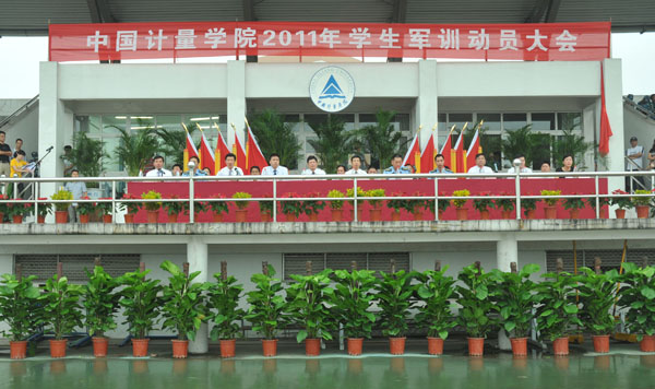 8月23日上午,我校在北田径场隆重举行2011年学生军训动员大会。校党委书记于永明,党委副书记徐涌金,副校长蒋家新、冯时林、宋明顺,纪委书记王小华,党委委员、学生处处长范庆瑜和空军28师副师长范俊华,政治部副主任汤森彪等部队领导出席了动员大会。大会由党校办主任杨政主持。