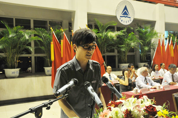 老生代表、校学生会副主席、现代科技学院高宇晨,新生代表、量新学院张鸿飞分别发言。材料科学与工程学院学生洪海斌带领全体新生在开学典礼上作了庄严的入学宣誓。