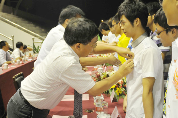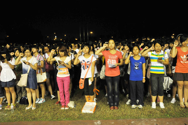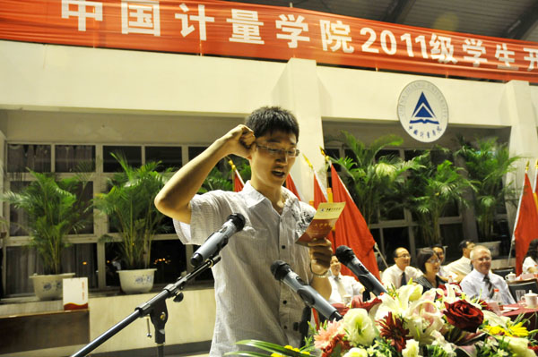 礼花在空中怒放,梦想伴随量院学子启航。9月4日晚,我校2011级新生开学典礼在学校北田径场隆重举行,来自全国各地的5000余名本科新生佩戴上中国计量学院校徽,一起见证他们成为量院人的神圣时刻。于永明、林建忠、徐涌金、陶伟华、蒋家新、冯时林、俞晓平、王小华等学校领导,党委委员、学生处处长范庆瑜参加了大会。大会由党委副书记陶伟华主持。