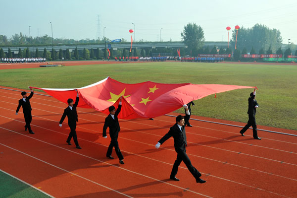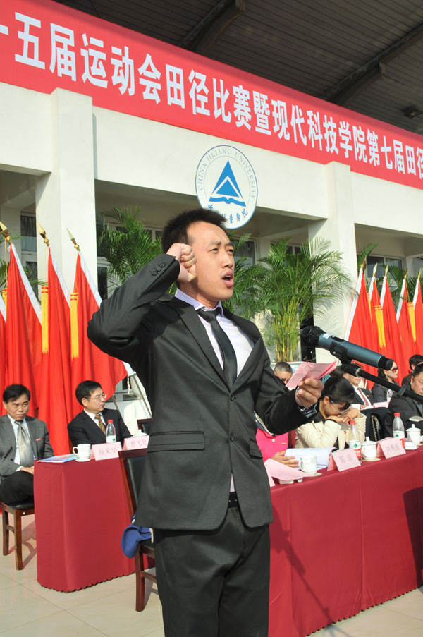 “比拼激扬梦想,搏击磨砺锋芒”、“体育使校园充满活力,事业因体育勃发生机”,“体育如花绽放快乐校园,青春似火燃烧亮丽人生!”……10月27日上午,学校北田径场横幅高挂,彩球飘扬,我校第二十五届运动会田径比赛暨现代科技学院第七届田径运动会在这里隆重开幕。校领导、校运动会主席团成员出席了开幕式。开幕式由党校办主任杨政主持。