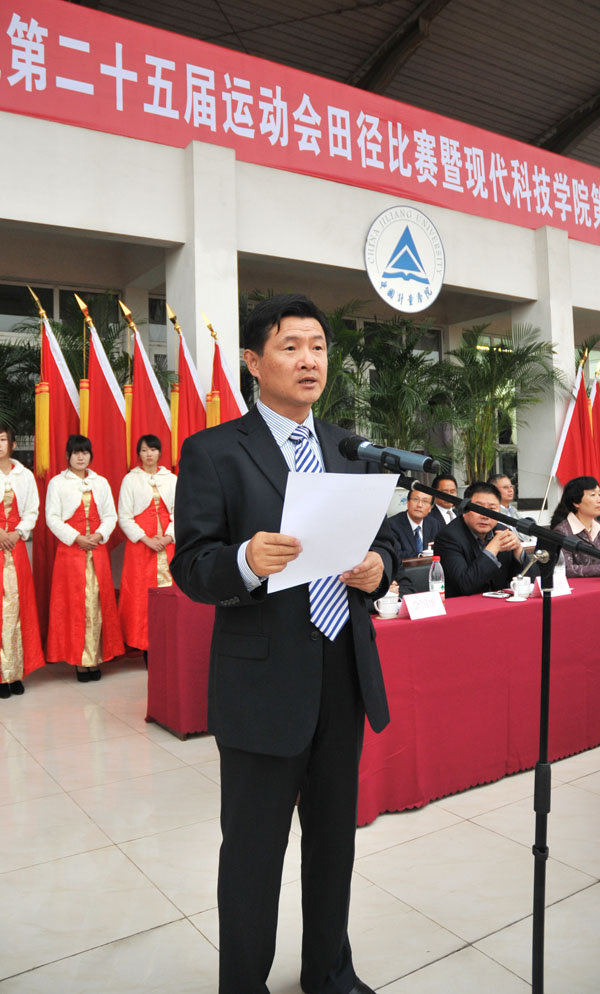 10月28日下午,在大型团体操表演和太极拳汇报演出后,我校第二十五届运动会田径比赛暨现代科技学院第七届田径运动会圆满完成了各项赛事,胜利闭幕。校党委书记于永明,校长林建忠,党委副书记徐涌金,副校长蒋家新、宋明顺,纪委书记王小华,党委委员、组织部部长陈希武出席了闭幕式。闭幕式由党校办主任杨政主持。
